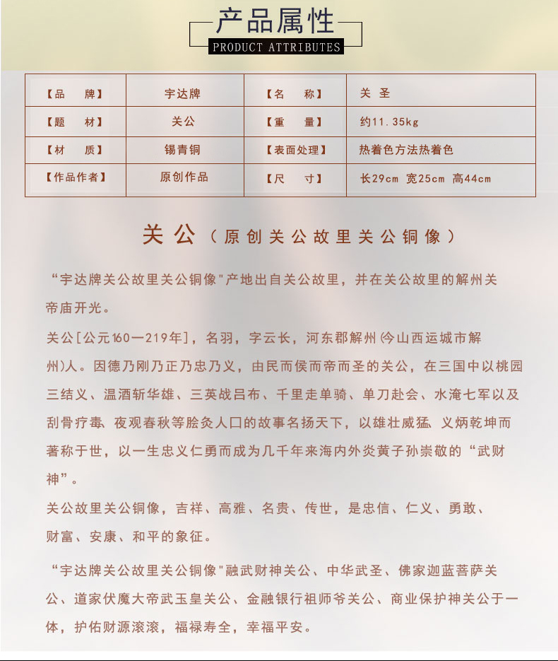 宇达青铜全铜摆件《关圣》铜工艺品 创意 关公礼品 家居装饰摆件