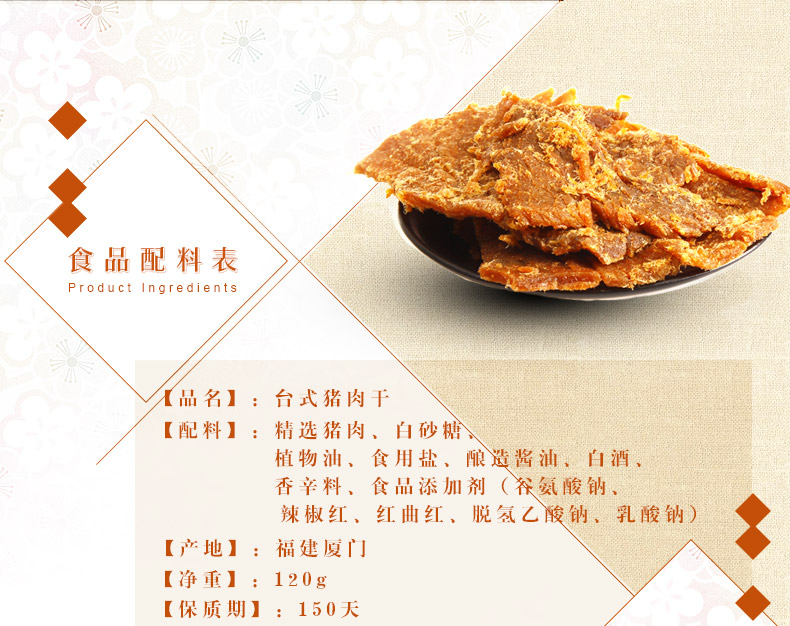 黄则和原味台式猪肉干猪肉条/干脯120g*3包厦门特产休闲零食烘烤