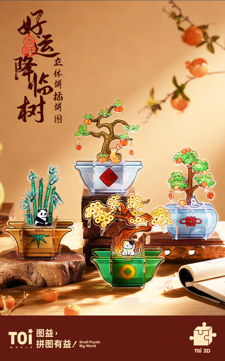 TOi图益-立体拼插-好运降临树-拼图盲盒(拍4发端盒)
