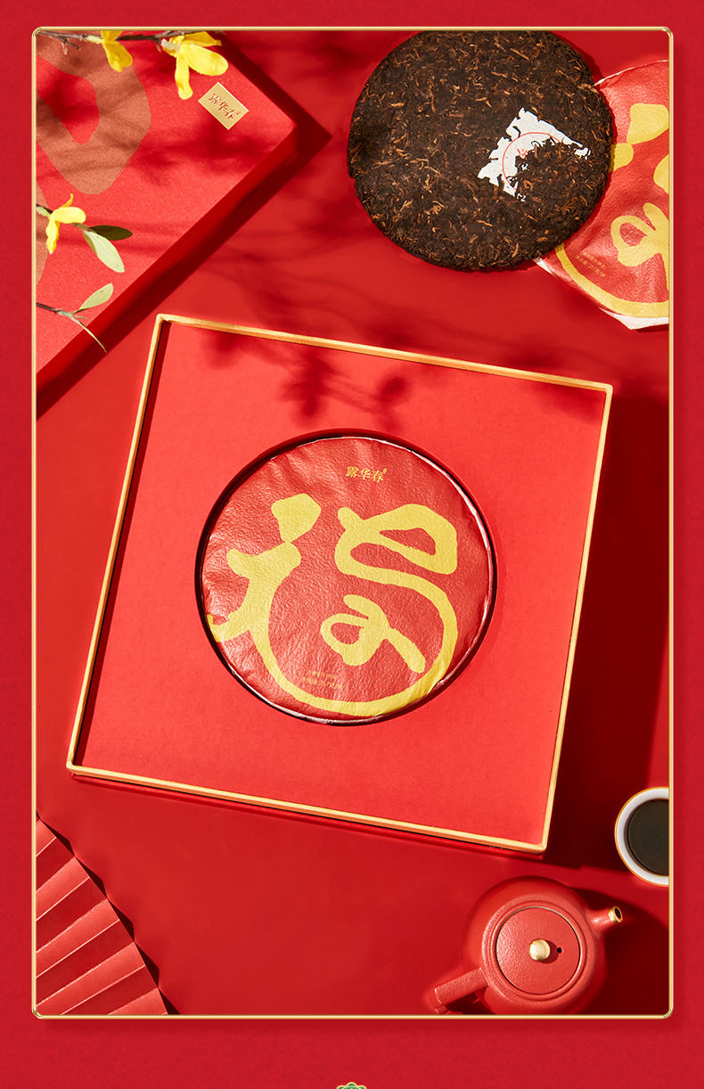 【自营】露华春茶叶礼盒 年年福礼盒(茶饼)357g 送长辈客户送礼