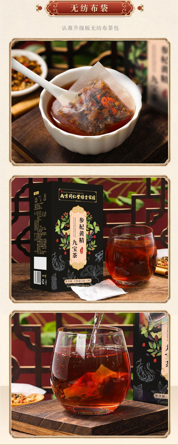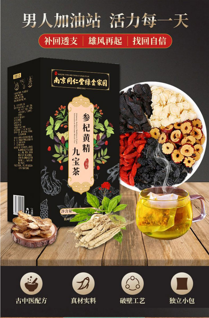 【九宝茶】南京同仁堂枸杞人参黄精红枣桑葚牛蒡根养生茶独立茶包