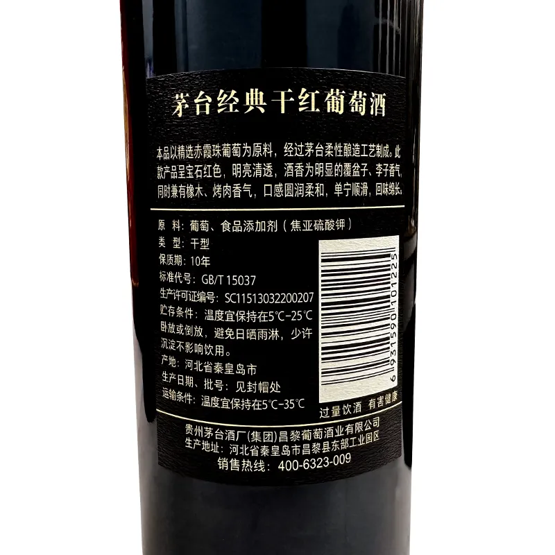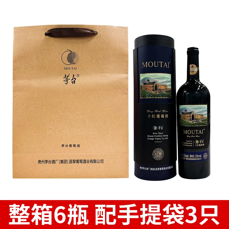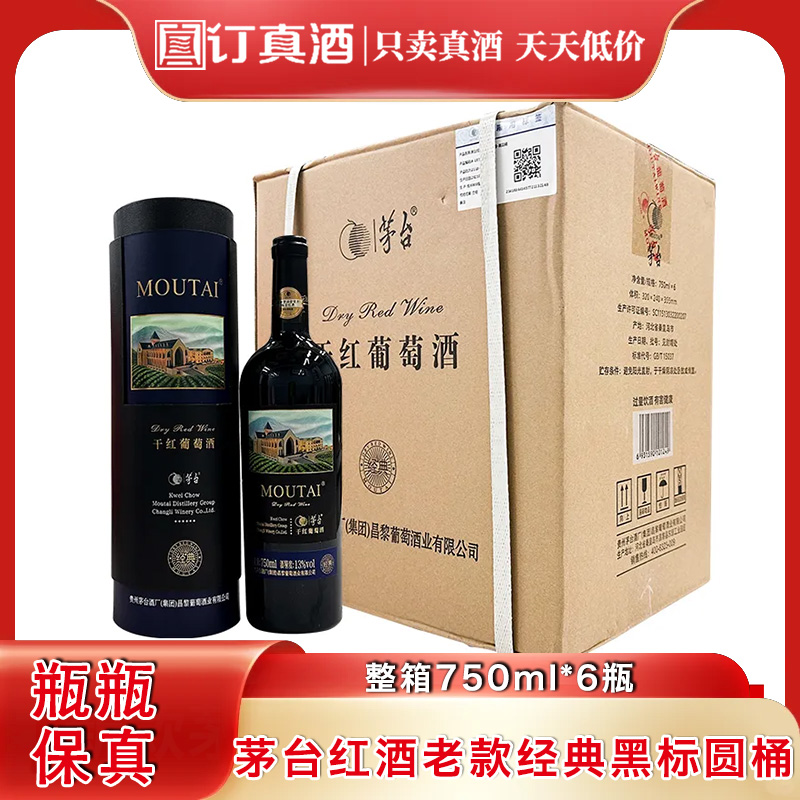 茅台红酒 老款经典黑标圆桶干红葡萄酒 整箱750ml*6瓶包邮