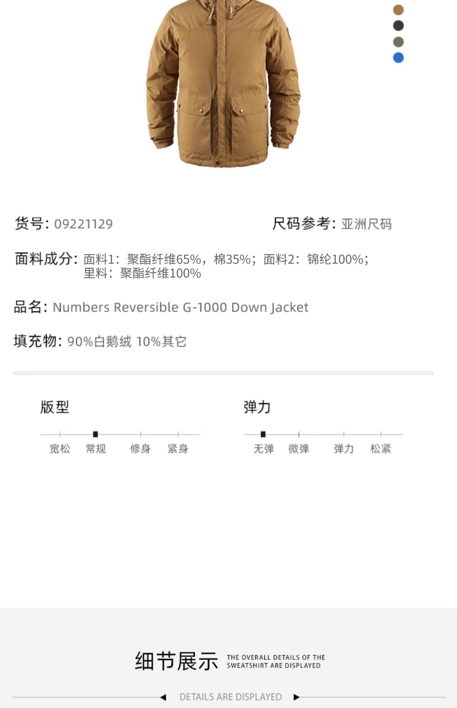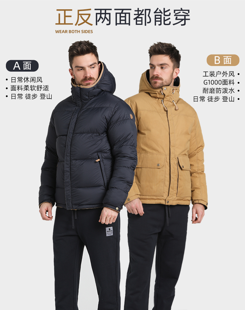 北极狐秋冬G-1000白鹅绒羽绒服男士可两面穿抗寒09221129