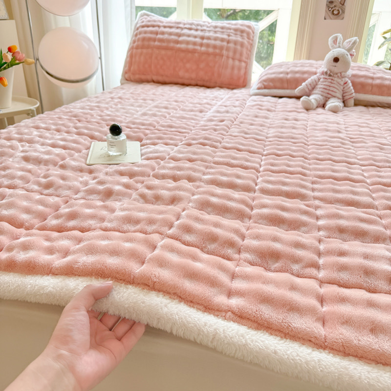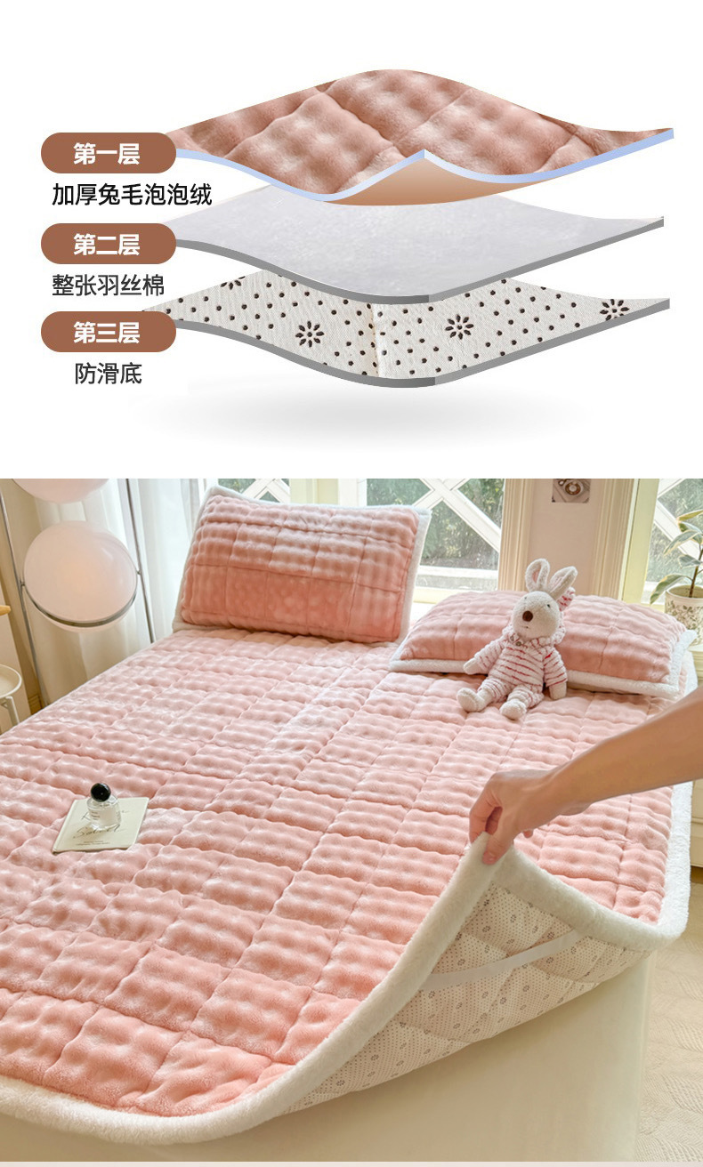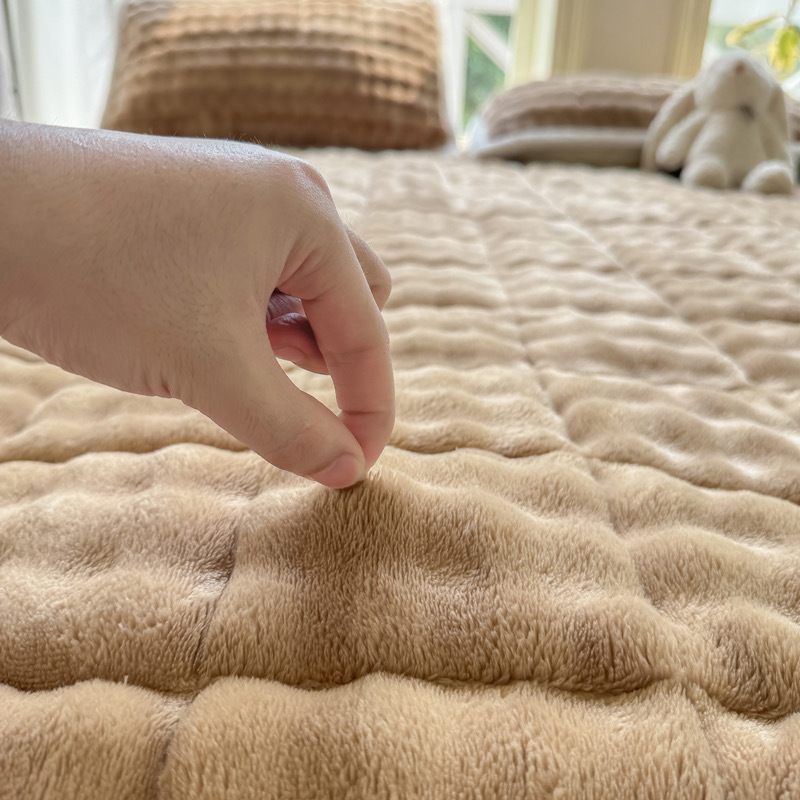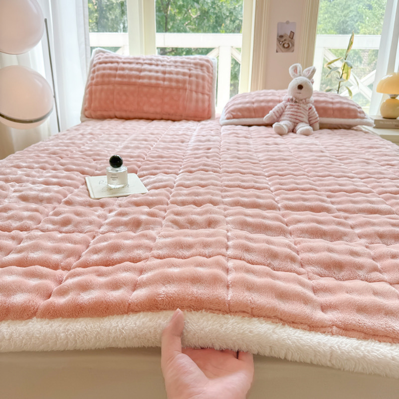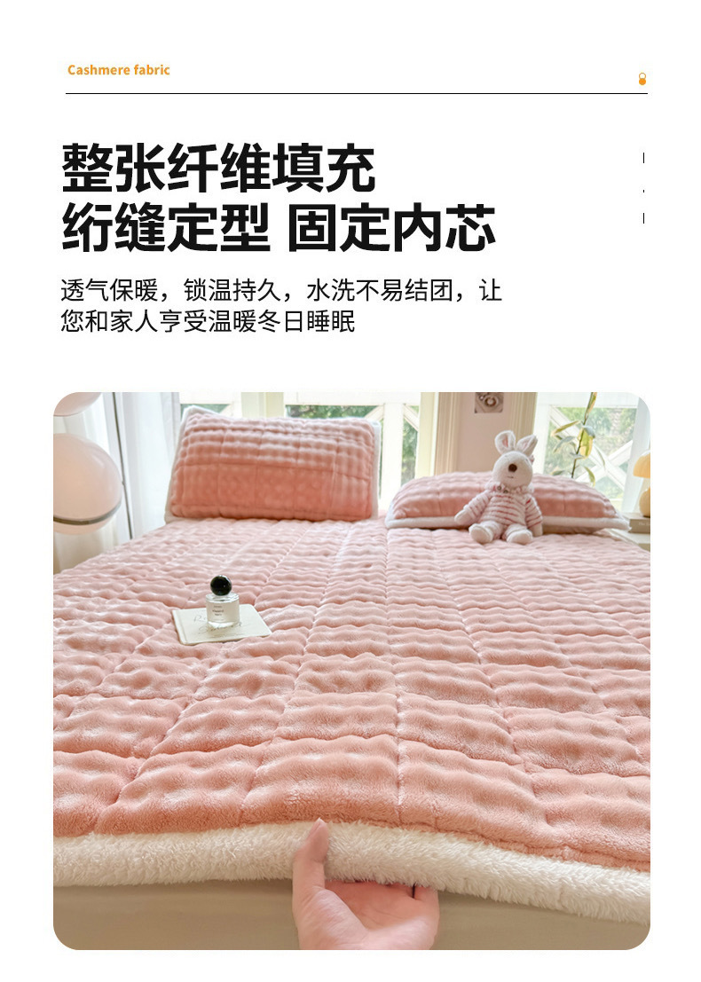 这款兔毛绒泡泡床垫以其顶级面料和优越舒适度成为冬季床品的热门之选。不论是温馨的家中还是宿舍,轻盈柔软的触感给您带来温暖的睡眠体验,是提升生活品质的理想选择。