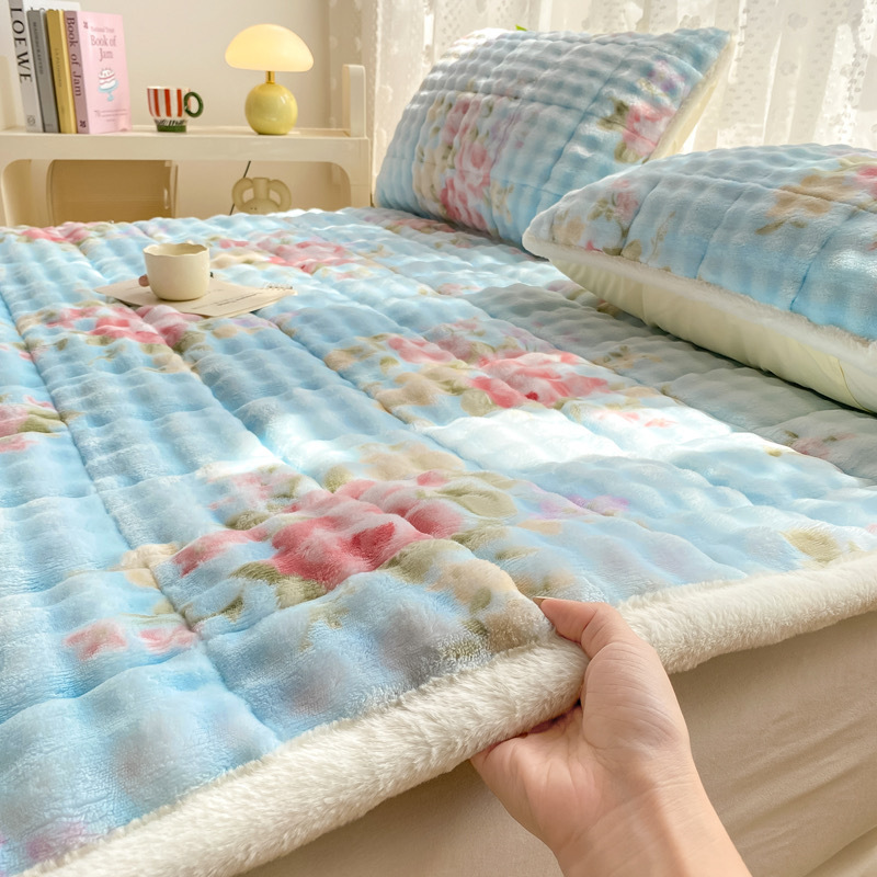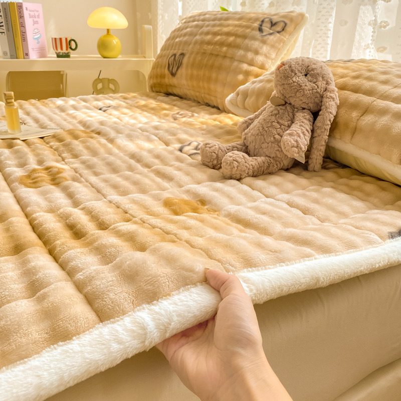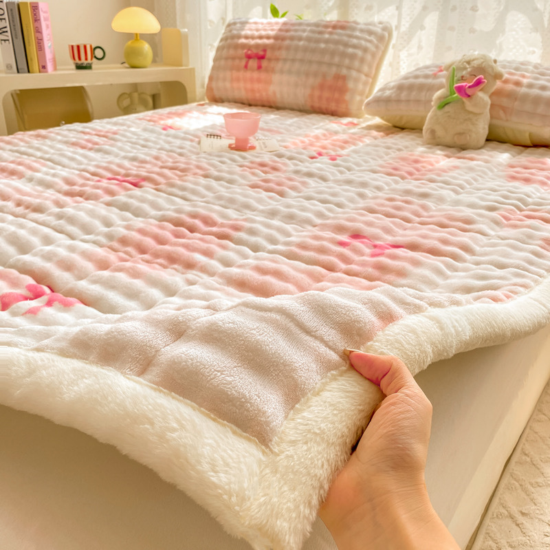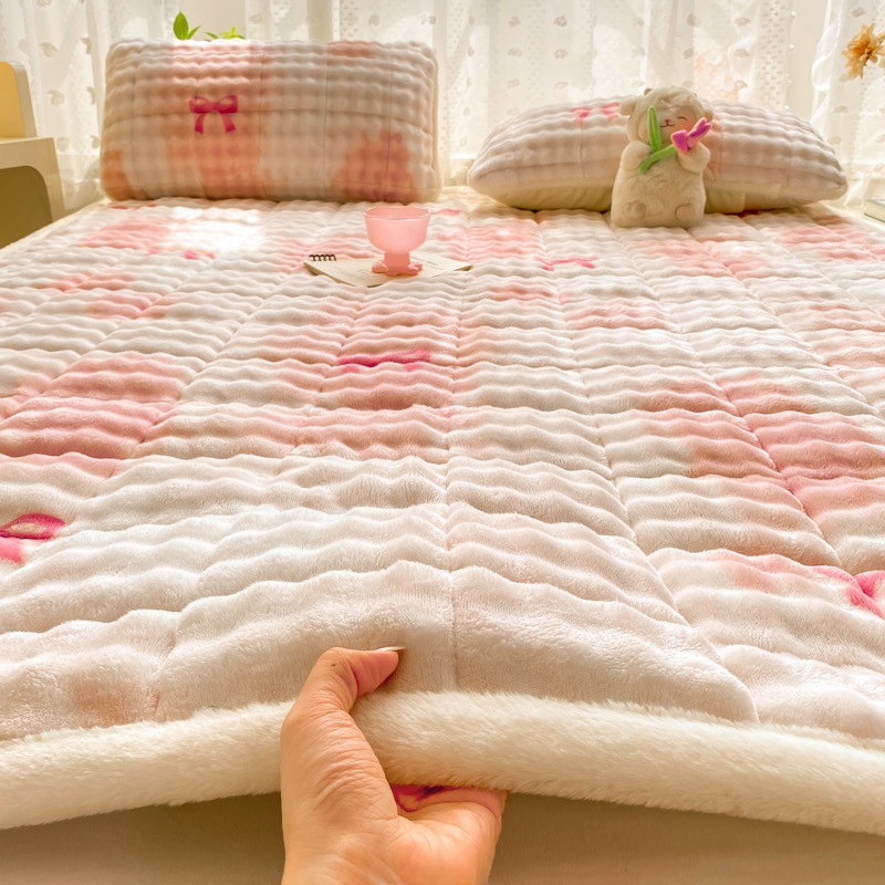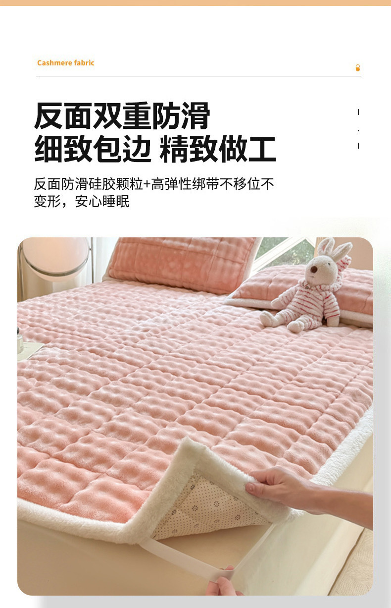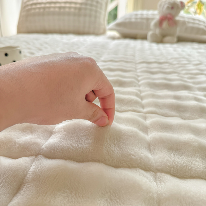 这款兔毛绒泡泡床垫以其顶级面料和优越舒适度成为冬季床品的热门之选。不论是温馨的家中还是宿舍,轻盈柔软的触感给您带来温暖的睡眠体验,是提升生活品质的理想选择。