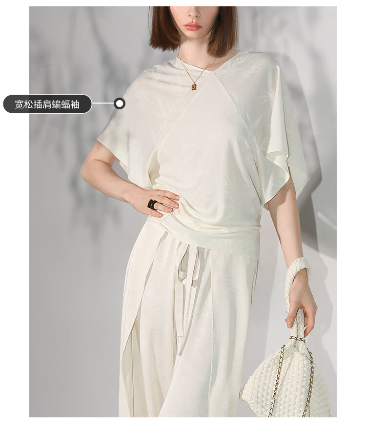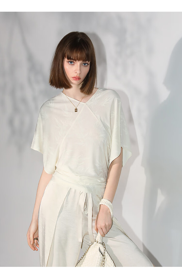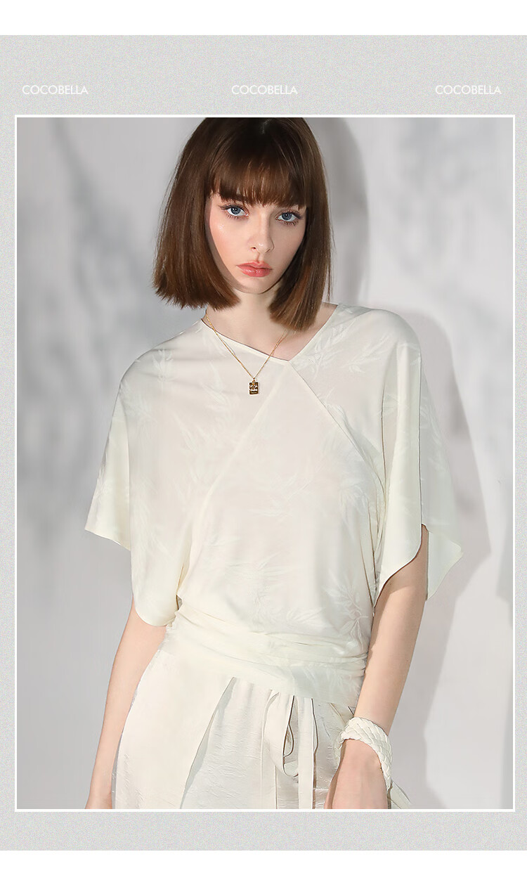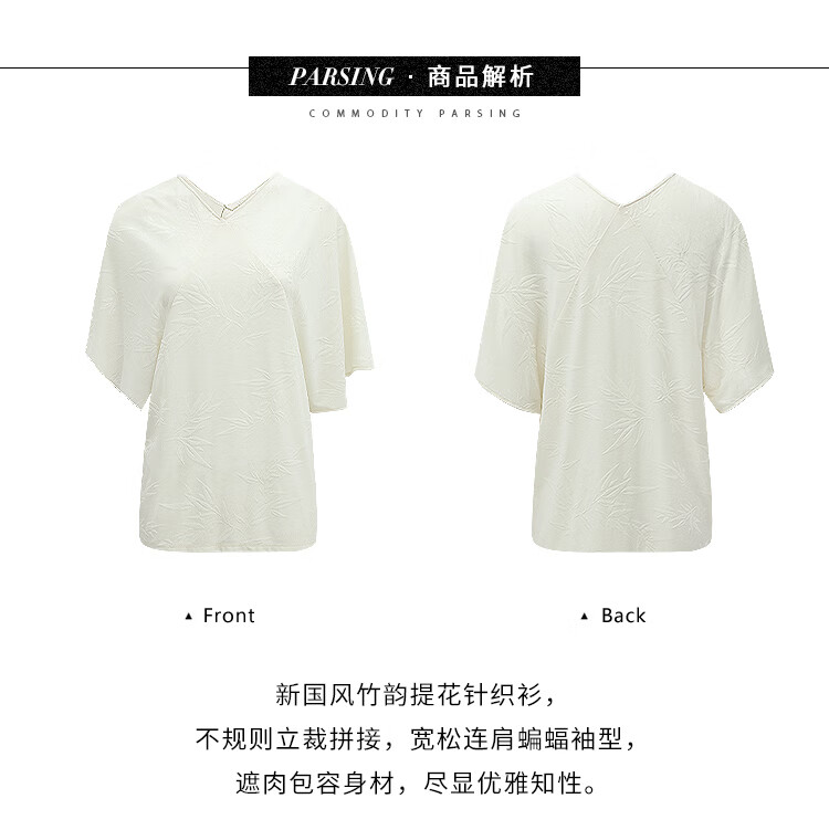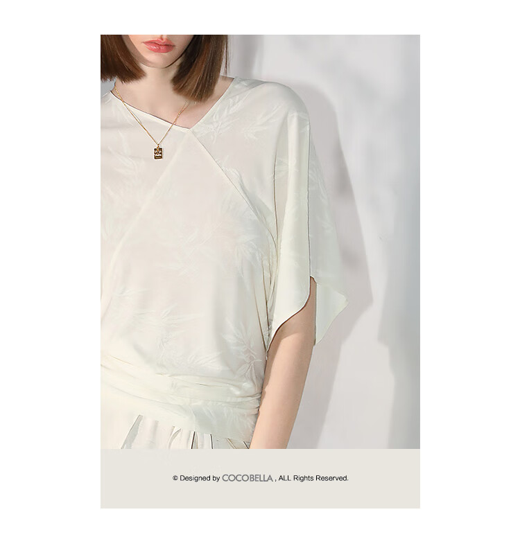 COCOBELLA[竹叶提花]新中式蝙蝠袖针织衫松弛感舒适上衣TS7019-6