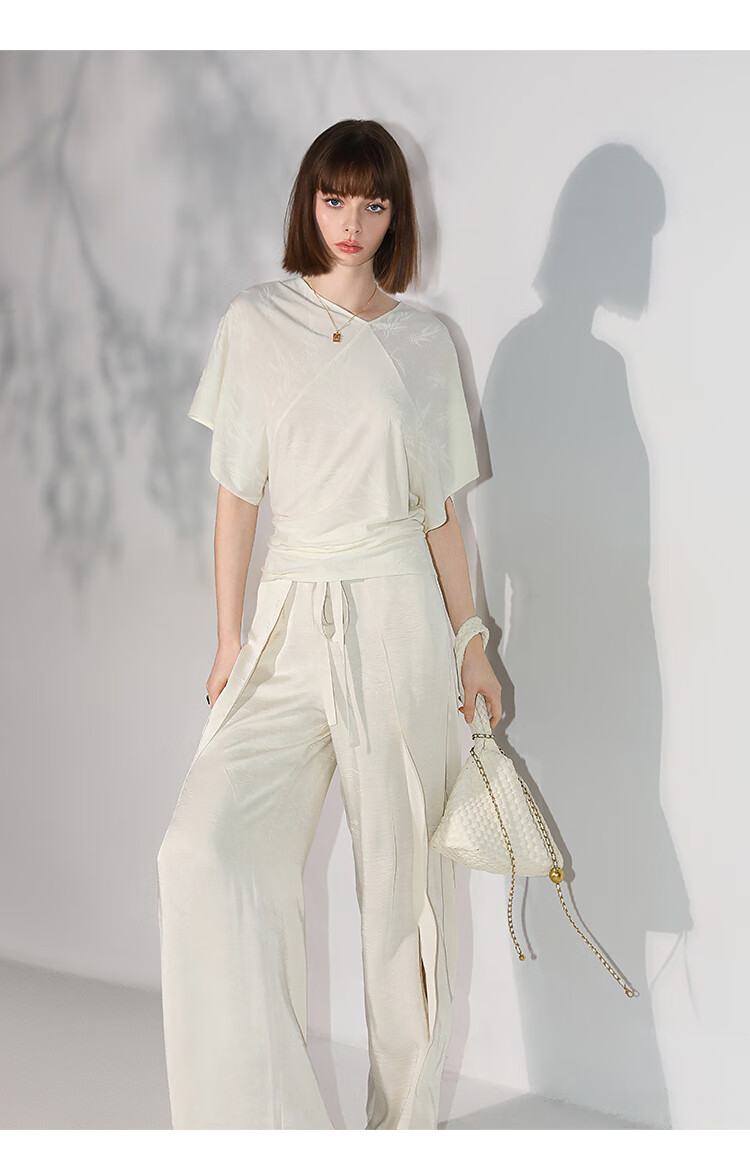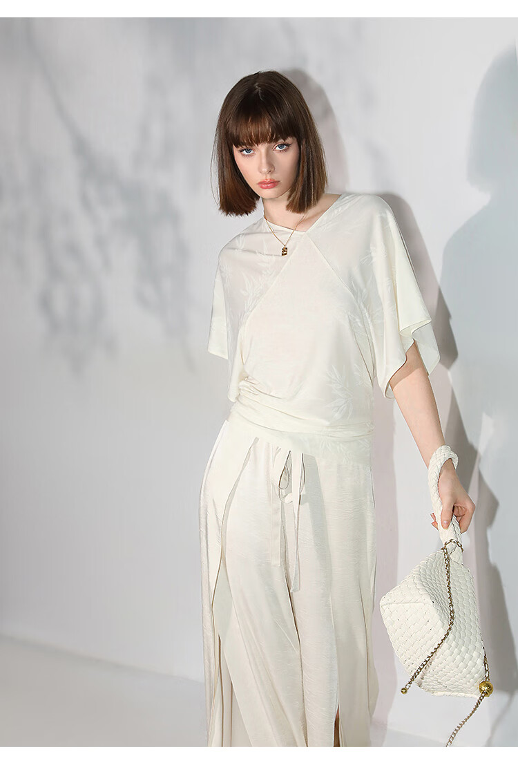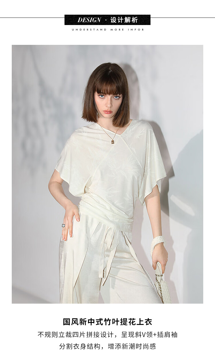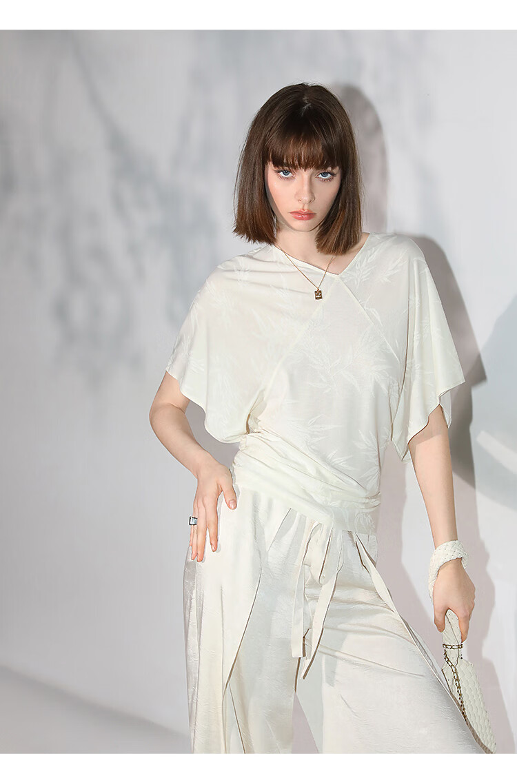 COCOBELLA[竹叶提花]新中式蝙蝠袖针织衫松弛感舒适上衣TS7019-6