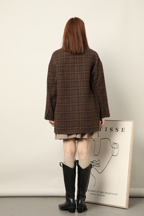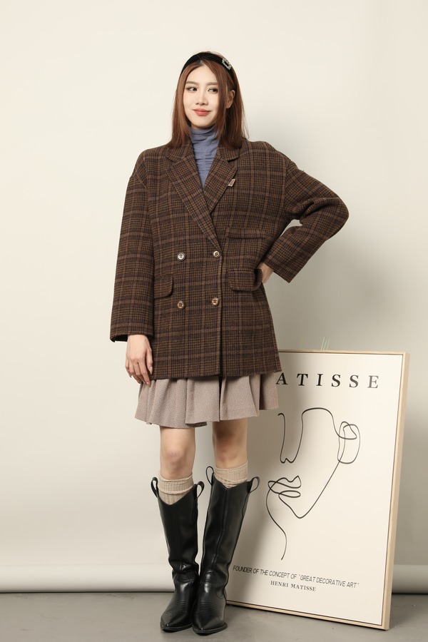 amadella 棕咖色格纹学院风西装双面呢大衣 17712