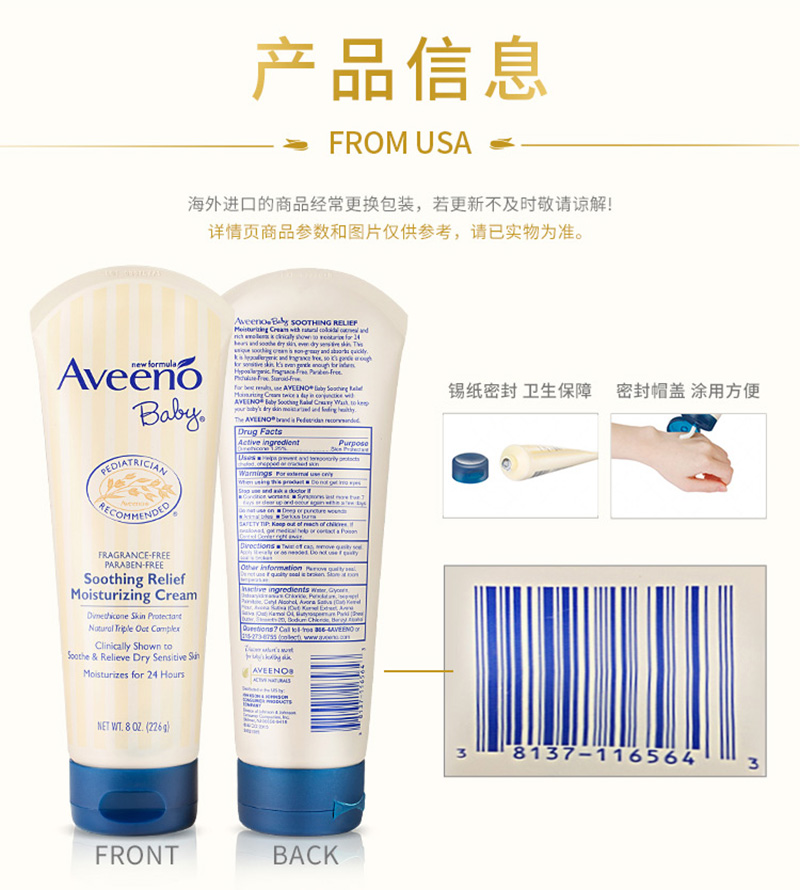 艾惟诺 婴儿天然燕麦保湿润肤乳226g 深蓝盖