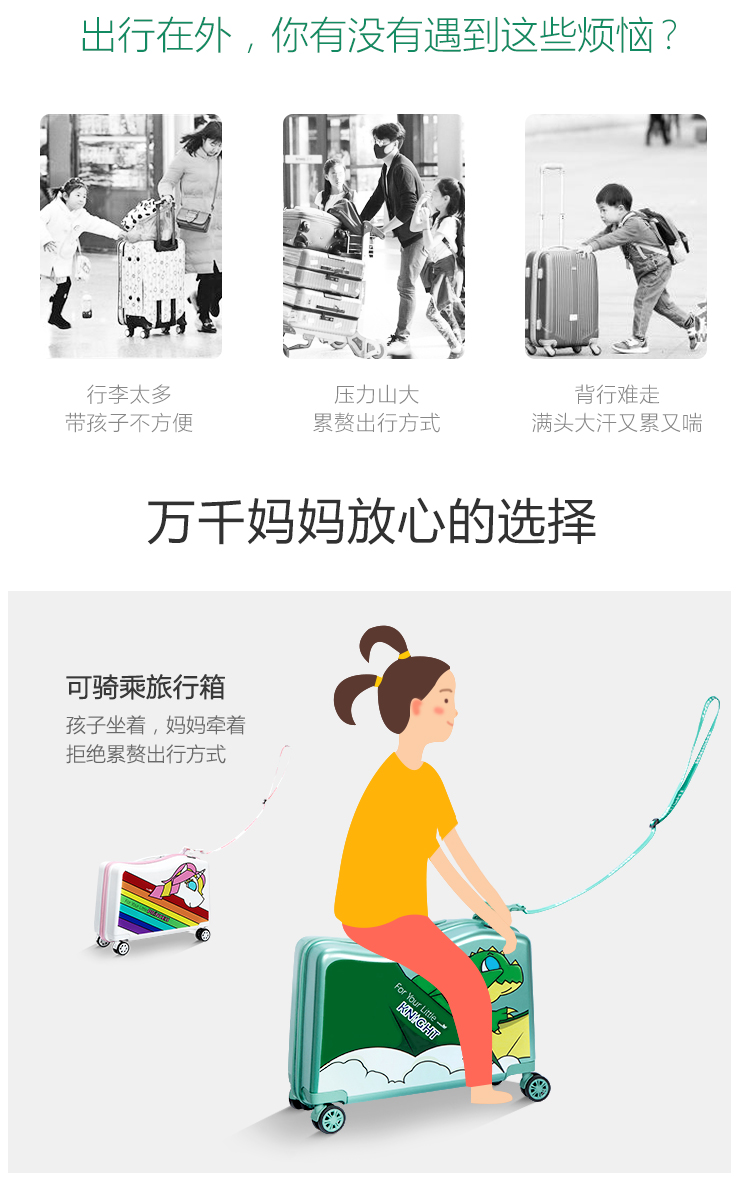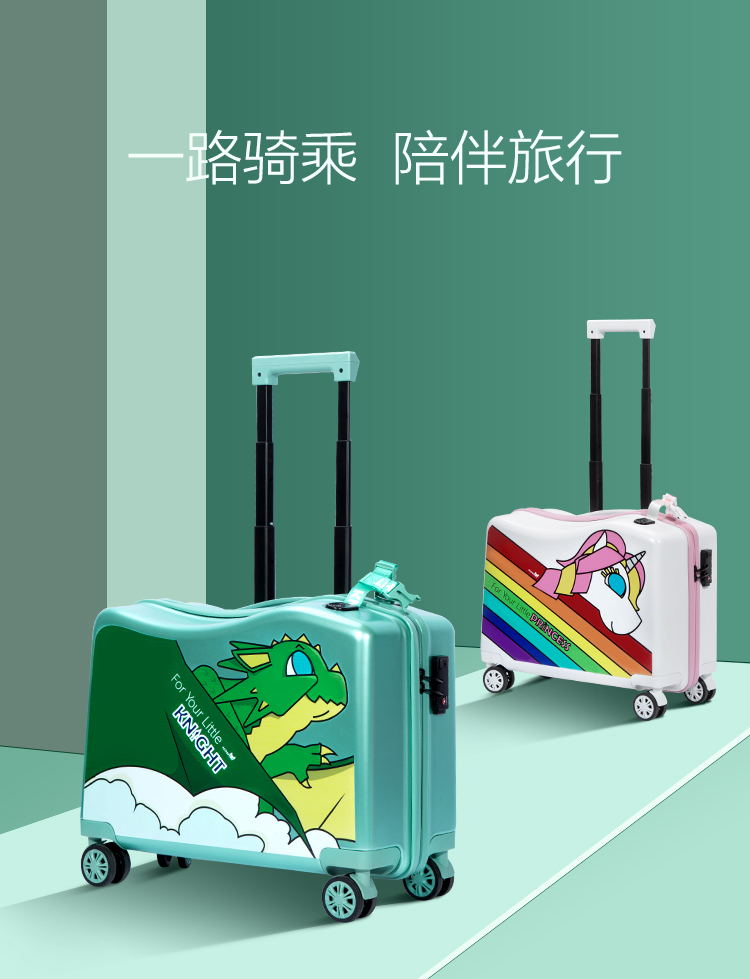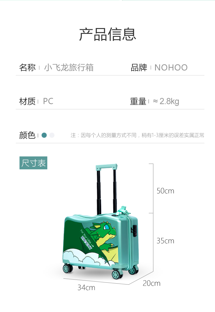 诺狐儿童拉杆箱懒人带溜娃可坐骑小孩行李箱男女童20寸卡通旅行箱