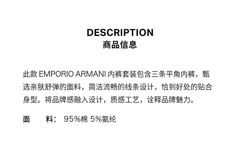 【贴身衣物不退不换】E ARMANI 内裤套装男 1113573F717-11250 .