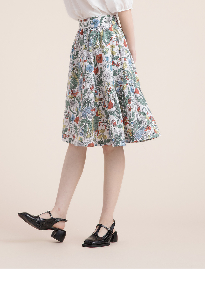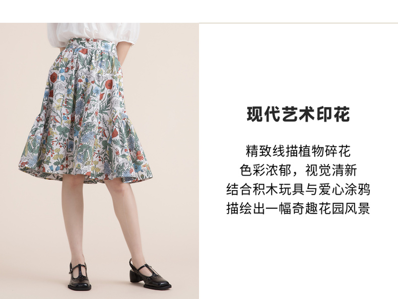 谜底碎花半截裙2022夏季新款复古文艺纯棉印花百褶裙222MB0687