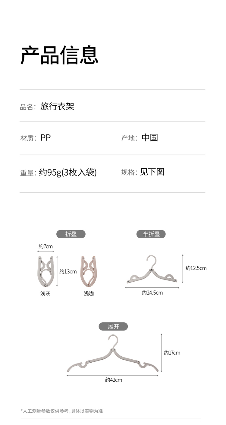 折叠衣架3枚装 旅行神器收纳衣挂家用衣服架内衣架子衣服架挂衣