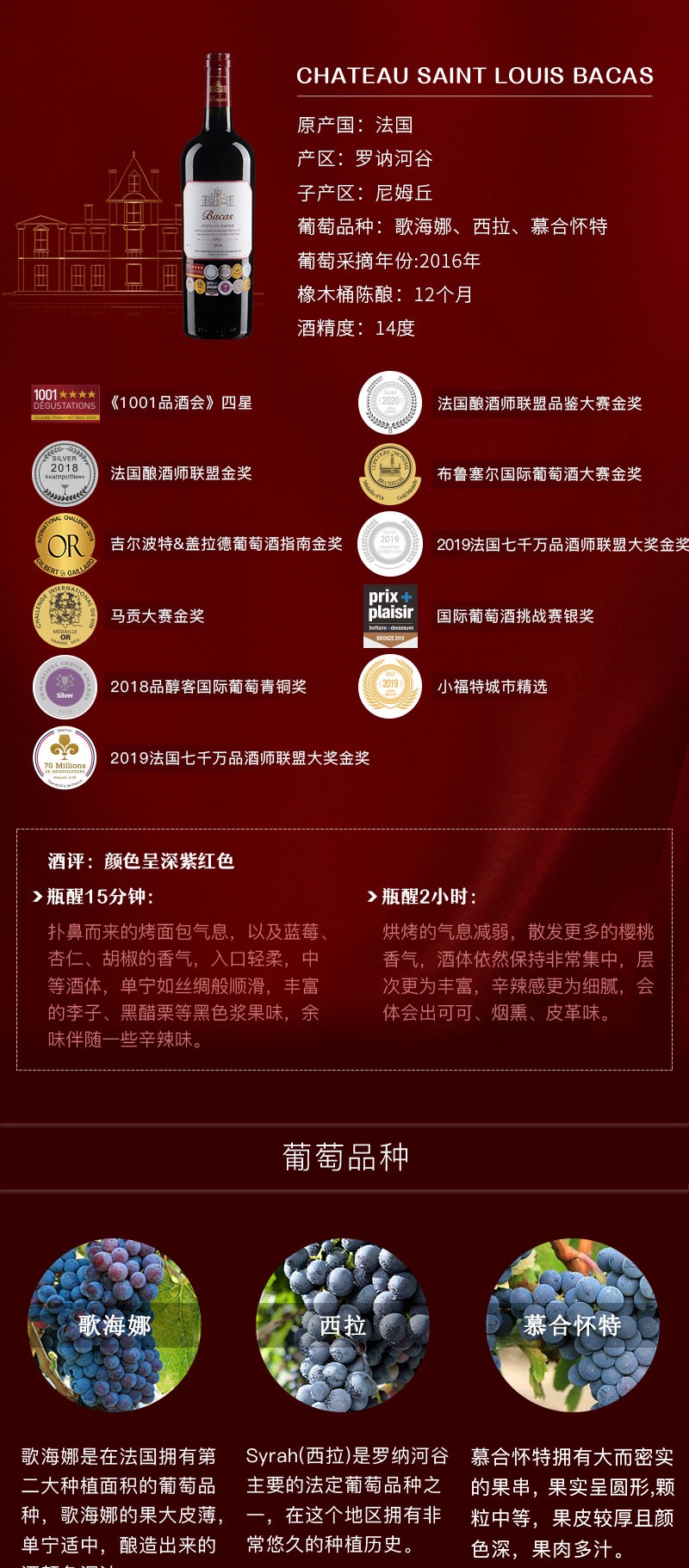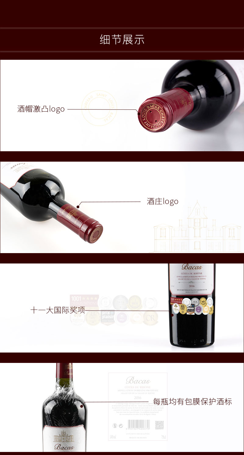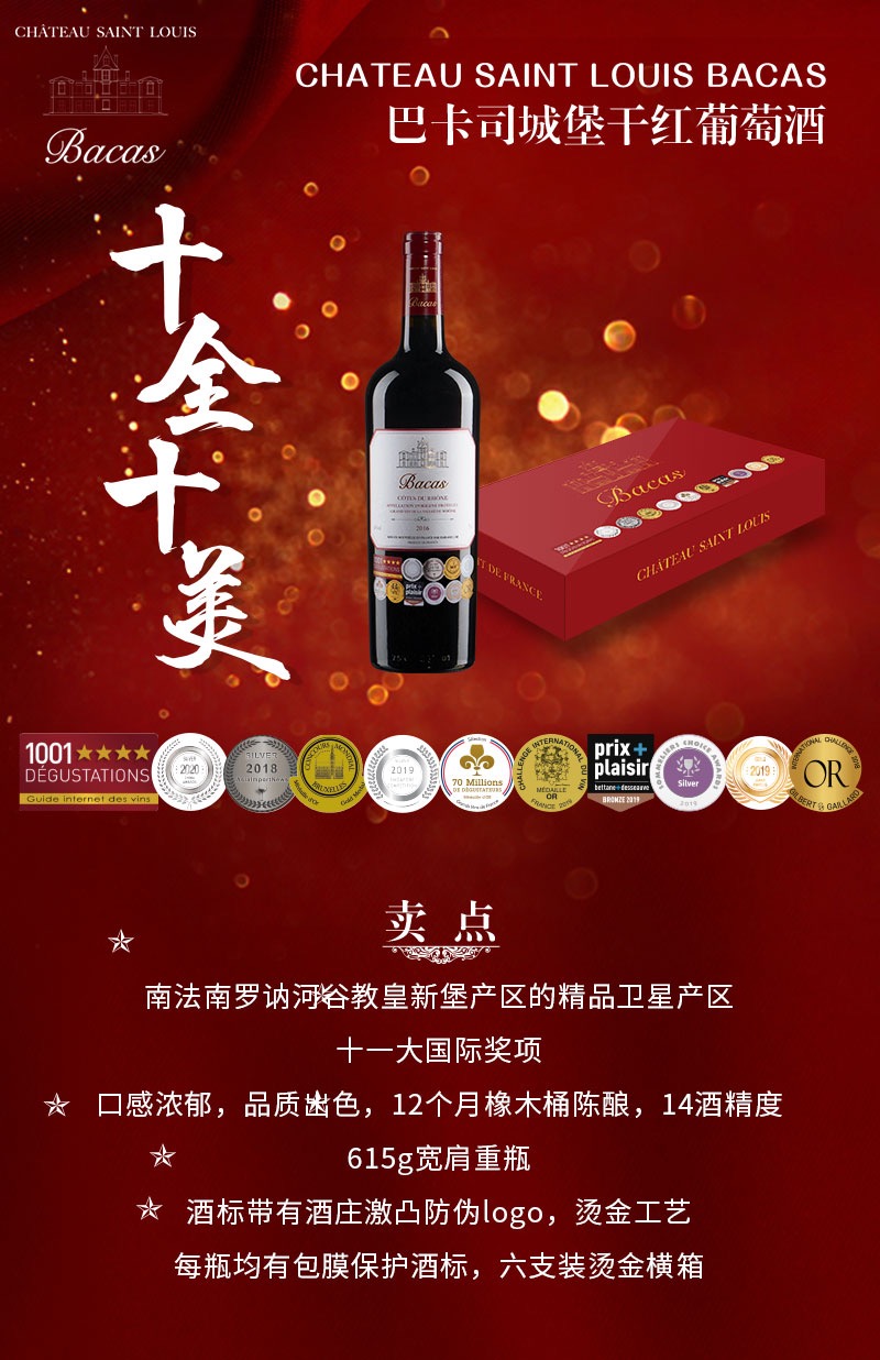 【自营】2016巴卡司干红葡萄酒 十全十美 酒中贵族 商品图2