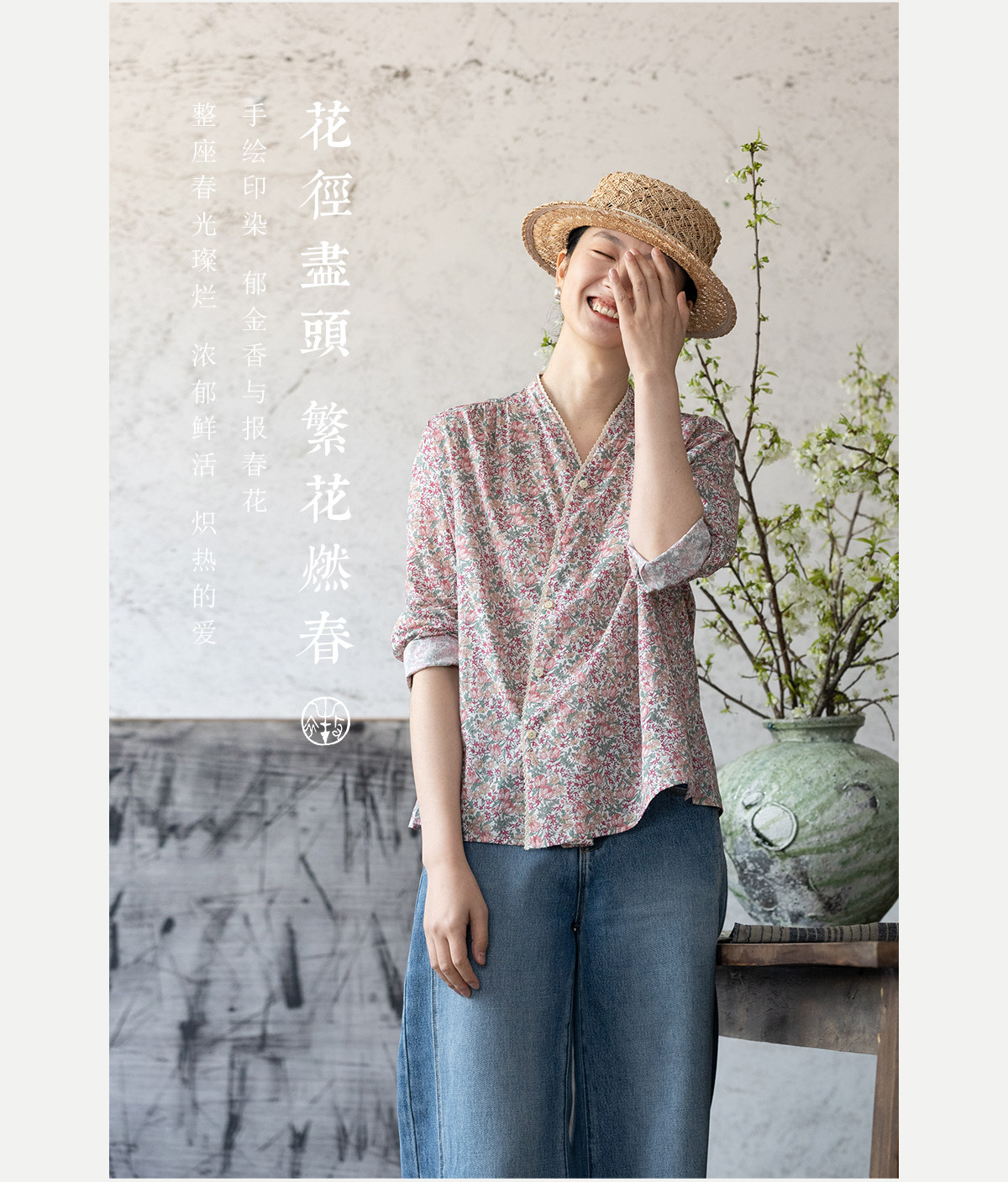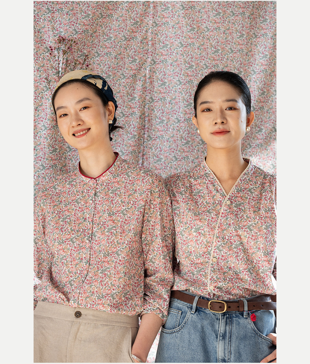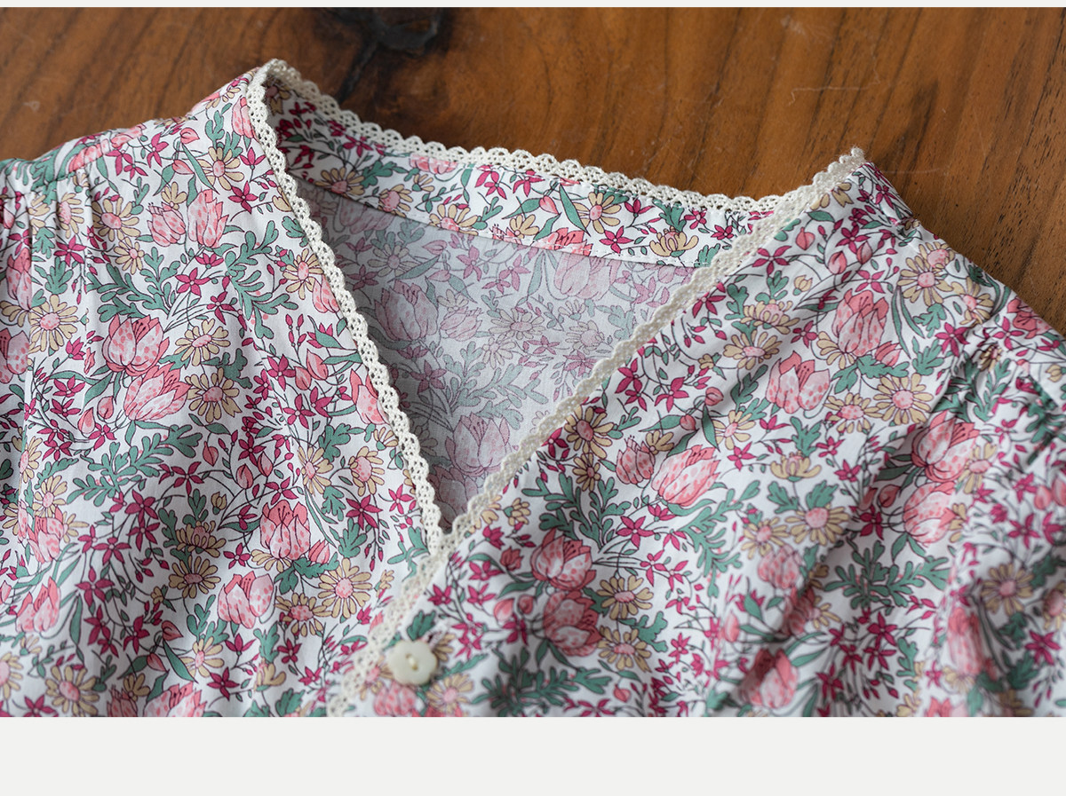 牧衣游原创进口Liberty印花棉外套新款通勤粉色气质文艺开衫 梧欣