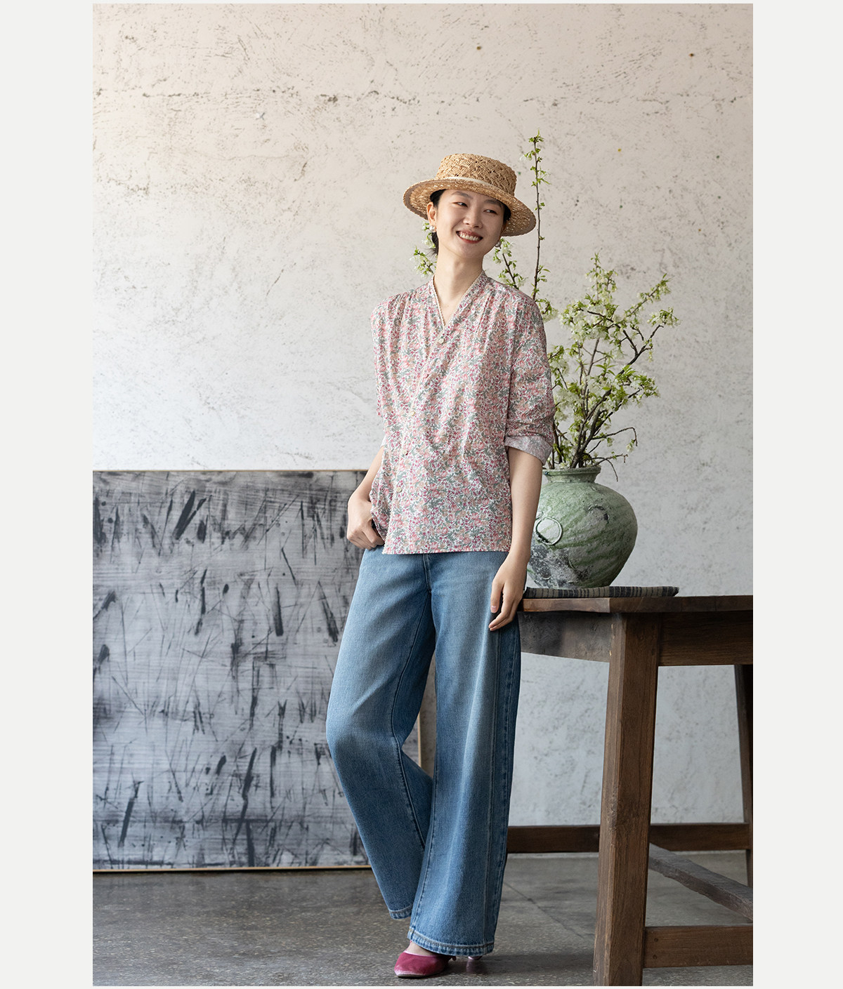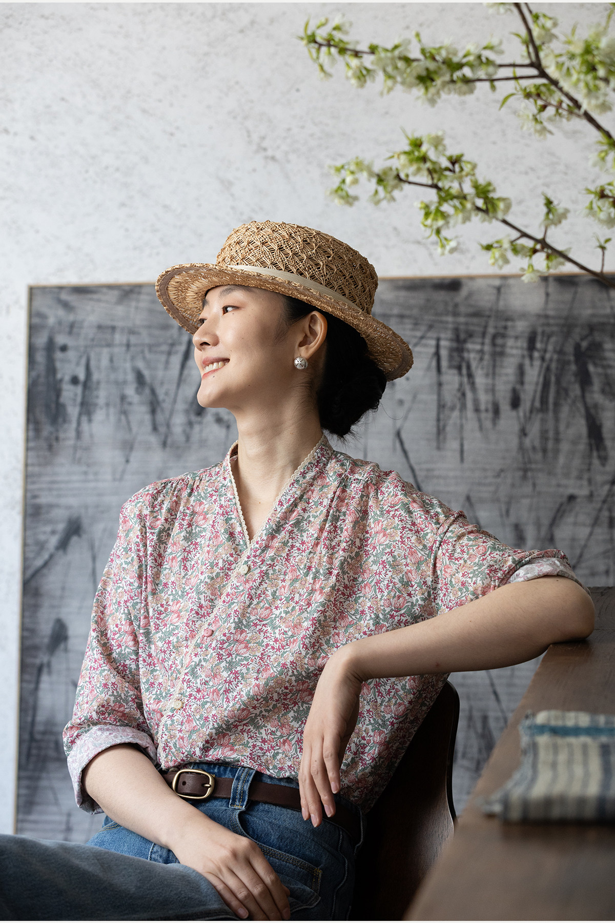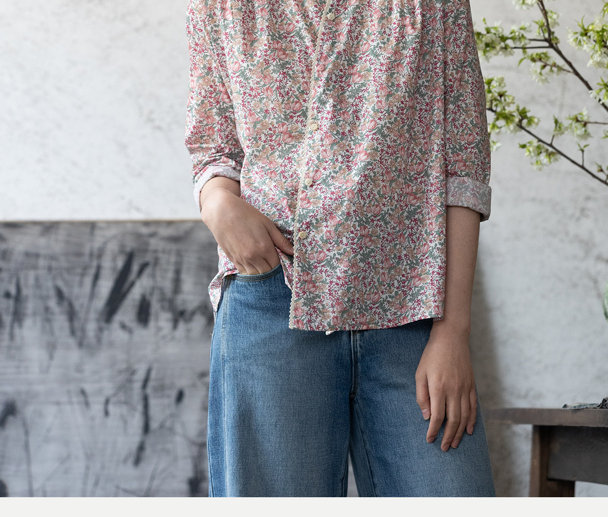牧衣游原创进口Liberty印花棉外套新款通勤粉色气质文艺开衫 梧欣