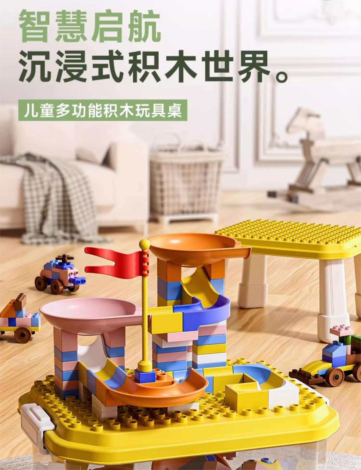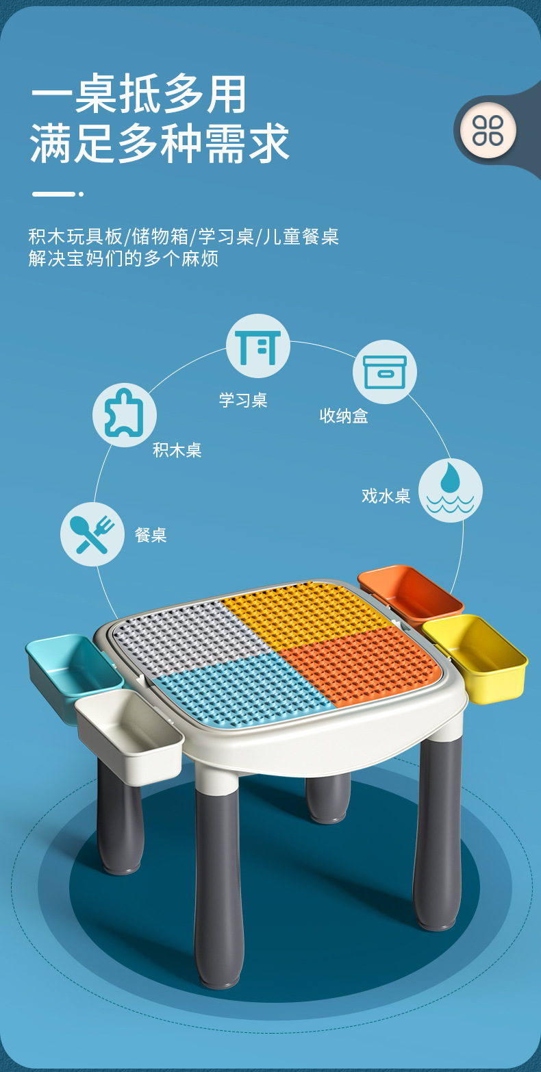 儿童积木桌宝宝益智拼装多功能玩具台游戏桌椅收纳箱大颗粒积木