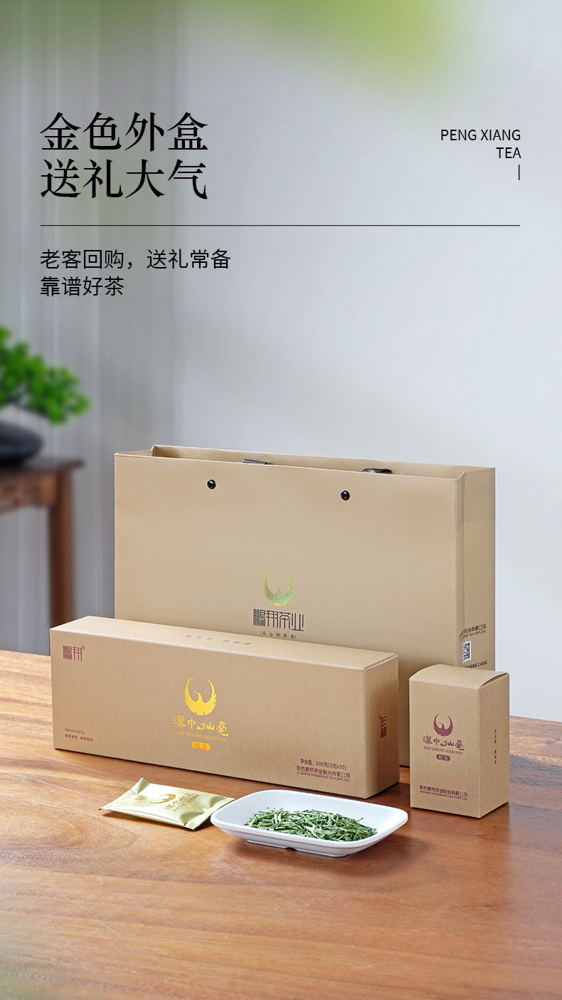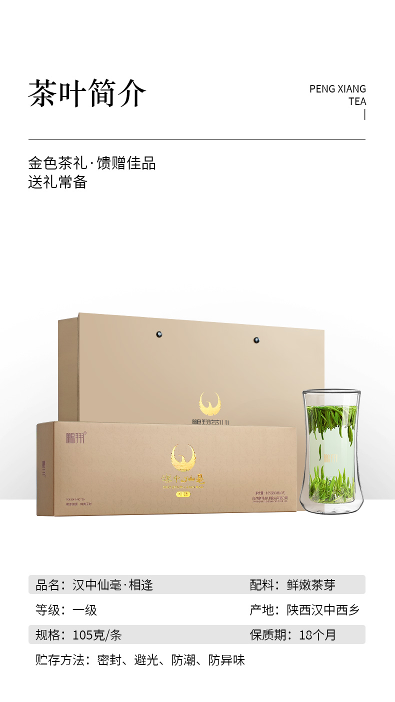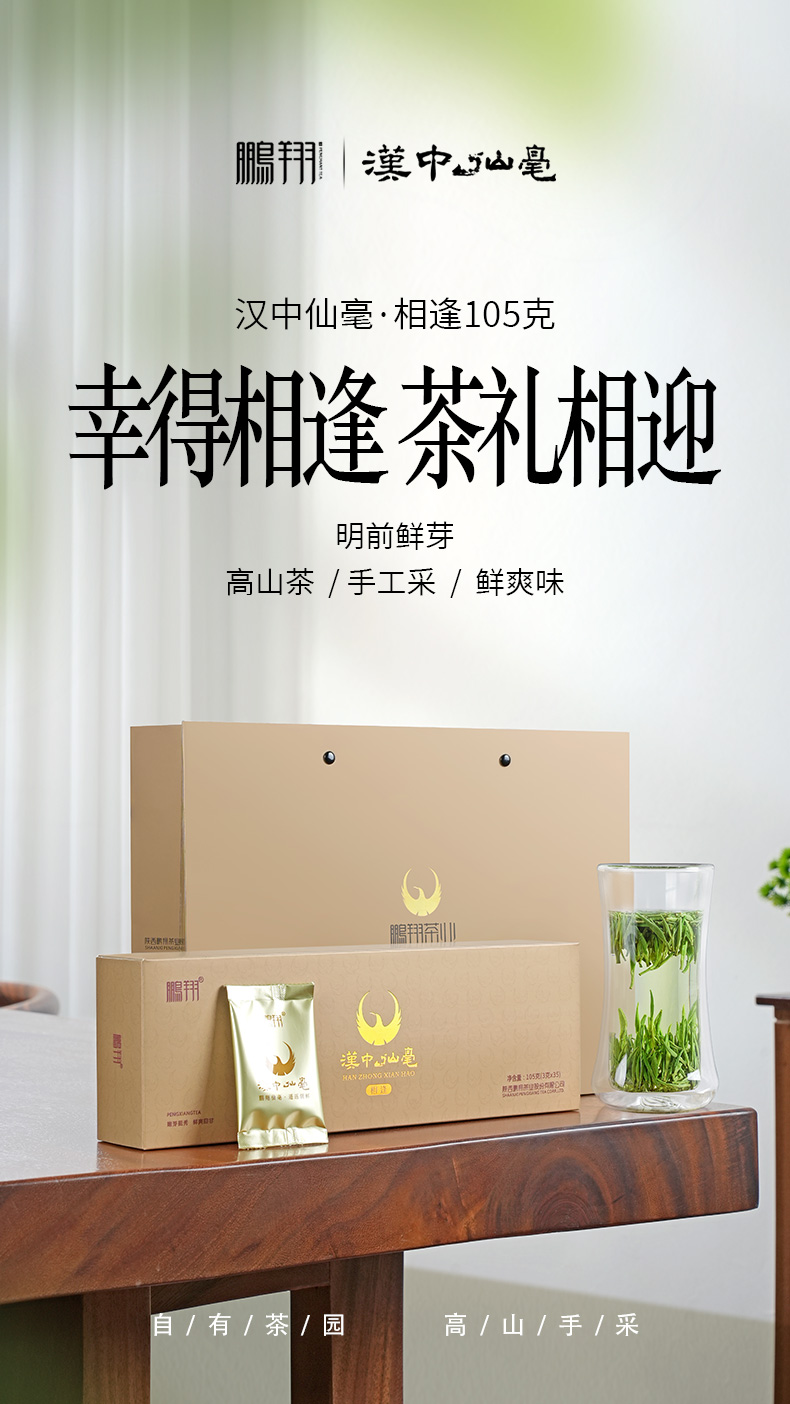 鹏翔汉中仙毫相逢105g条 明前嫩芽手工采摘36道工序精制而成 礼盒装