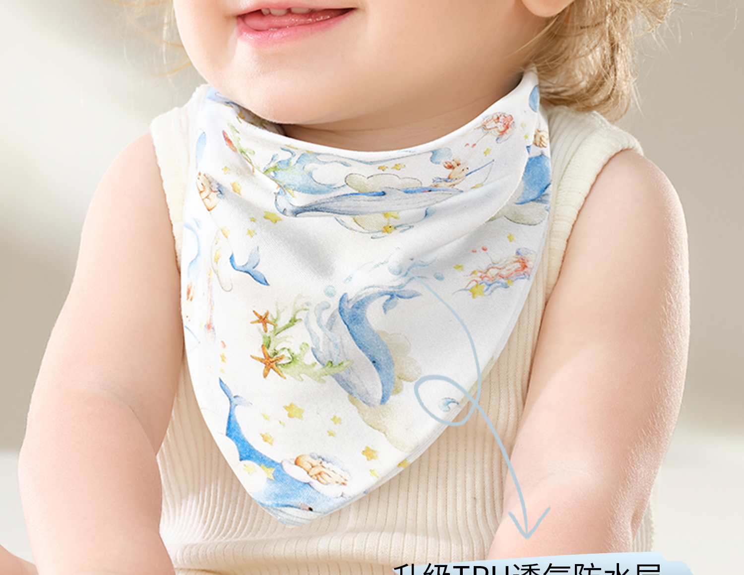 科巢婴儿口水巾宝宝围嘴兜a类纯棉夏季薄款新生幼儿围脖防水吐奶速干