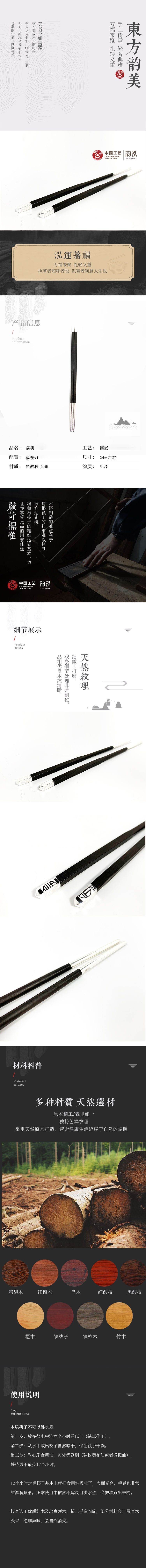 实木上下镶嵌999纯银福筷