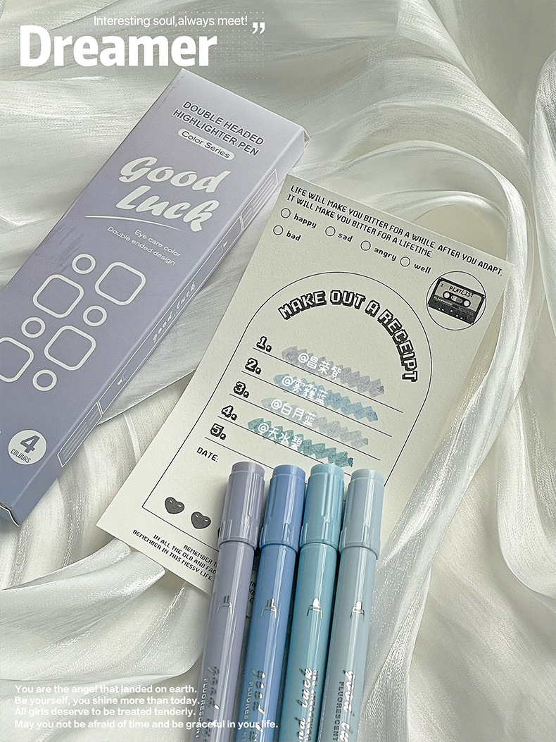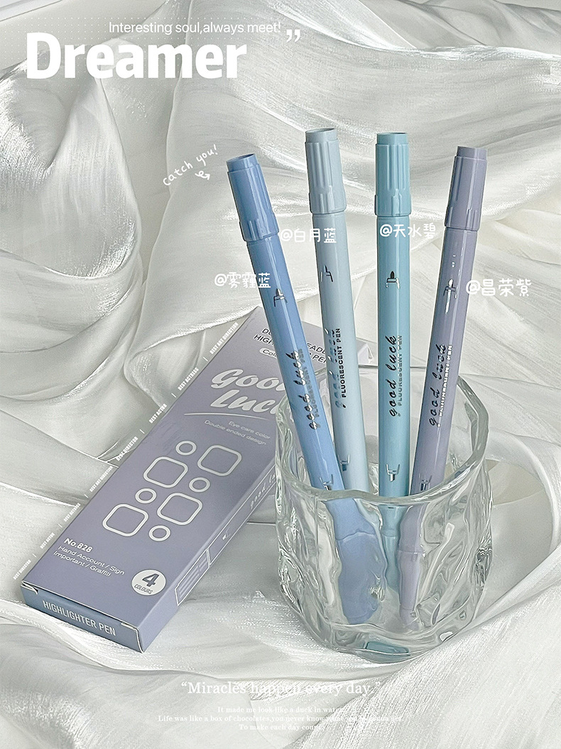 「9.9到手4支!3款色系」光笔标记笔学生课堂专用记重点护眼记号笔彩色粗细划重点文具