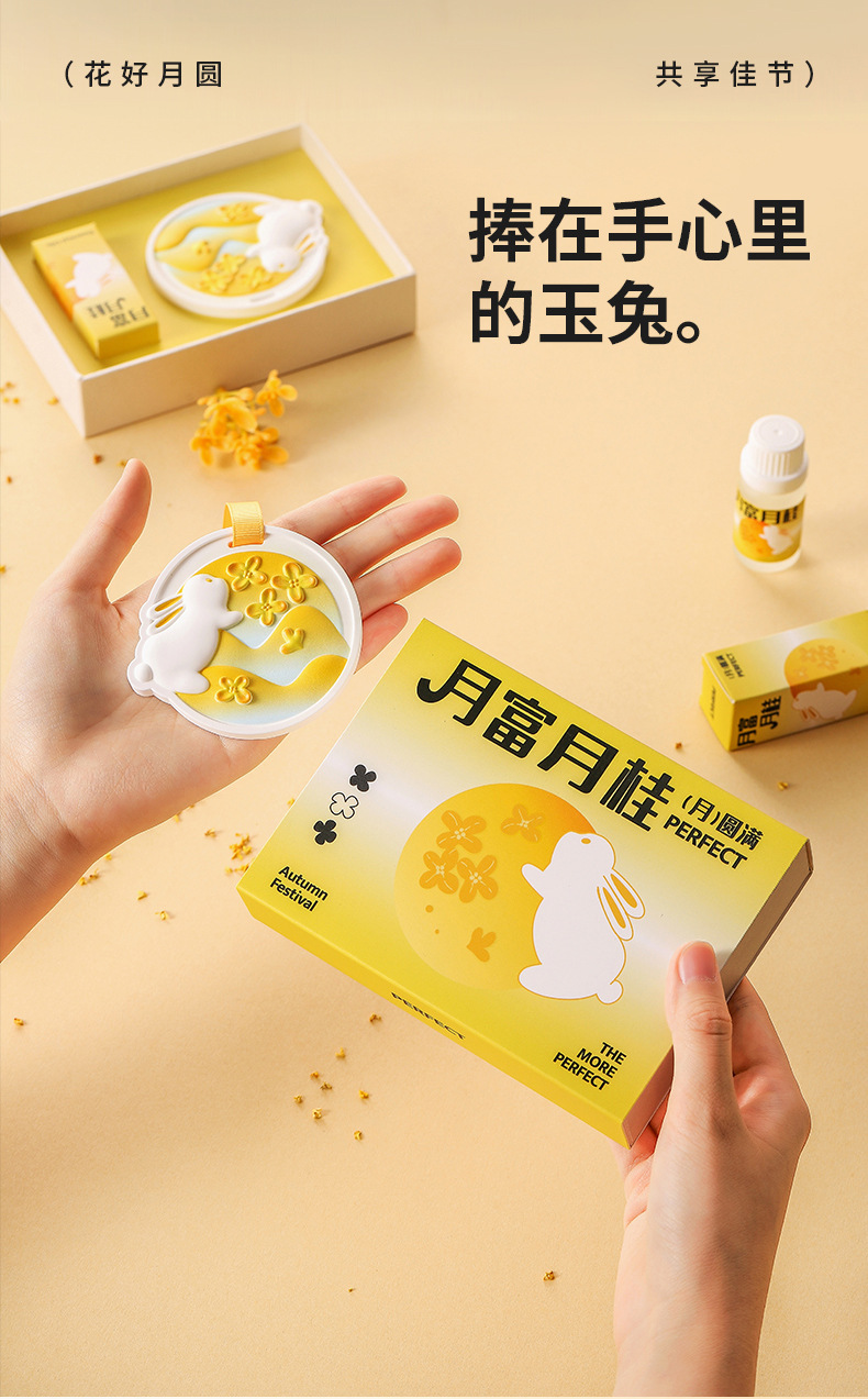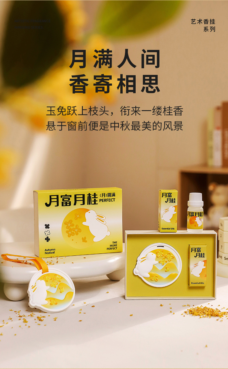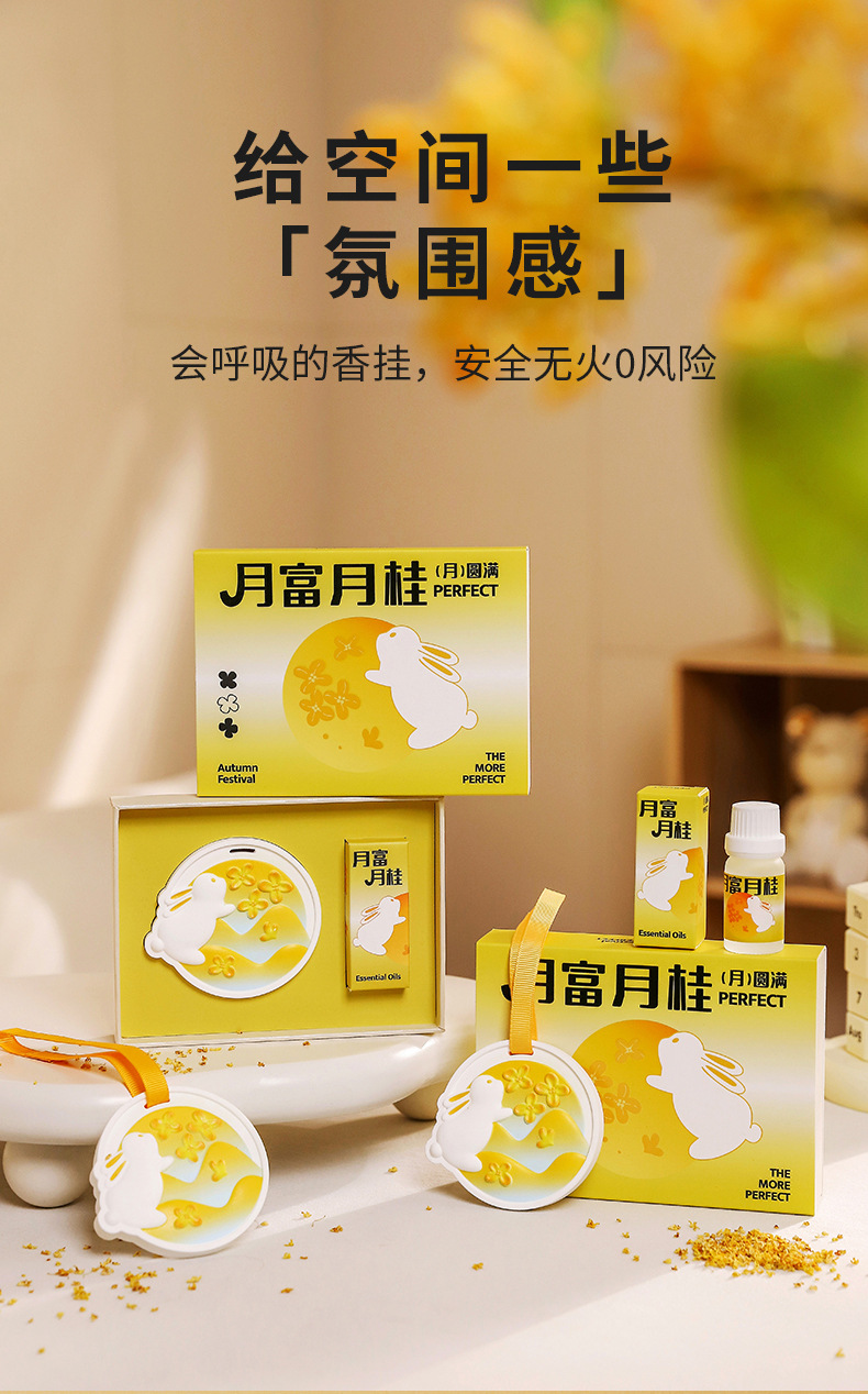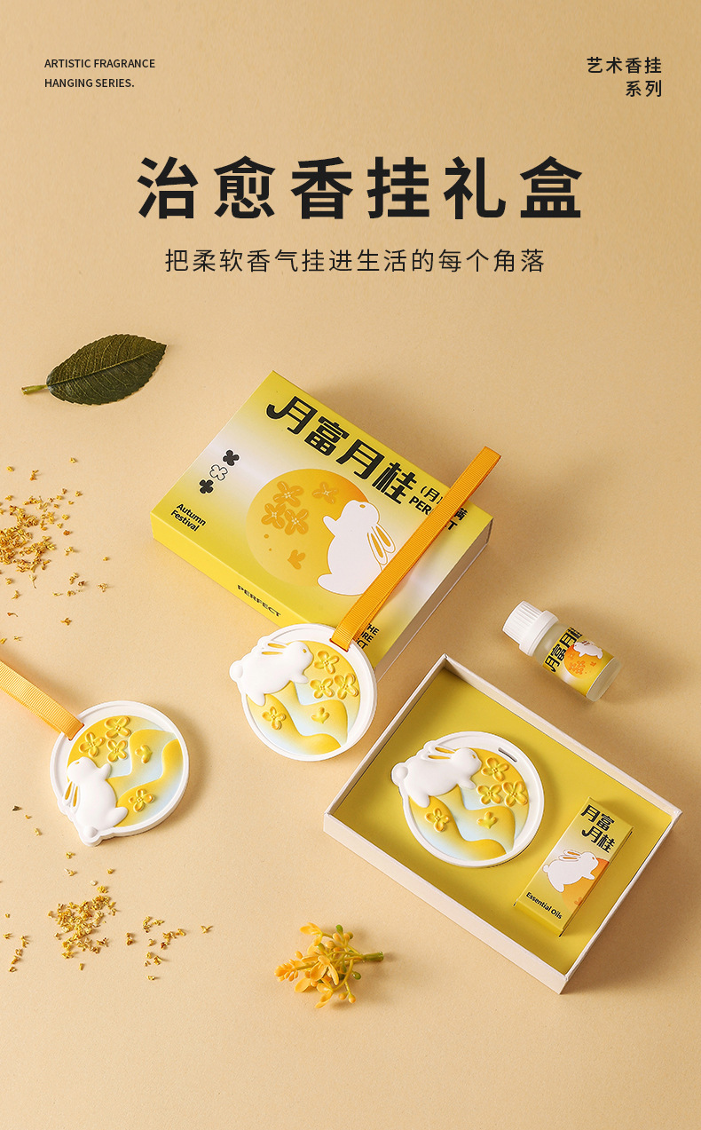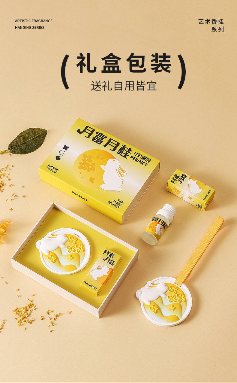 「月发富桂·礼盒装」中秋节石膏香薰礼盒衣柜月兔香挂居家日用室内车载扩香石伴手礼品