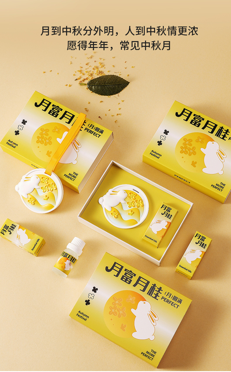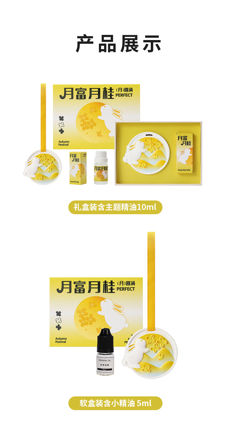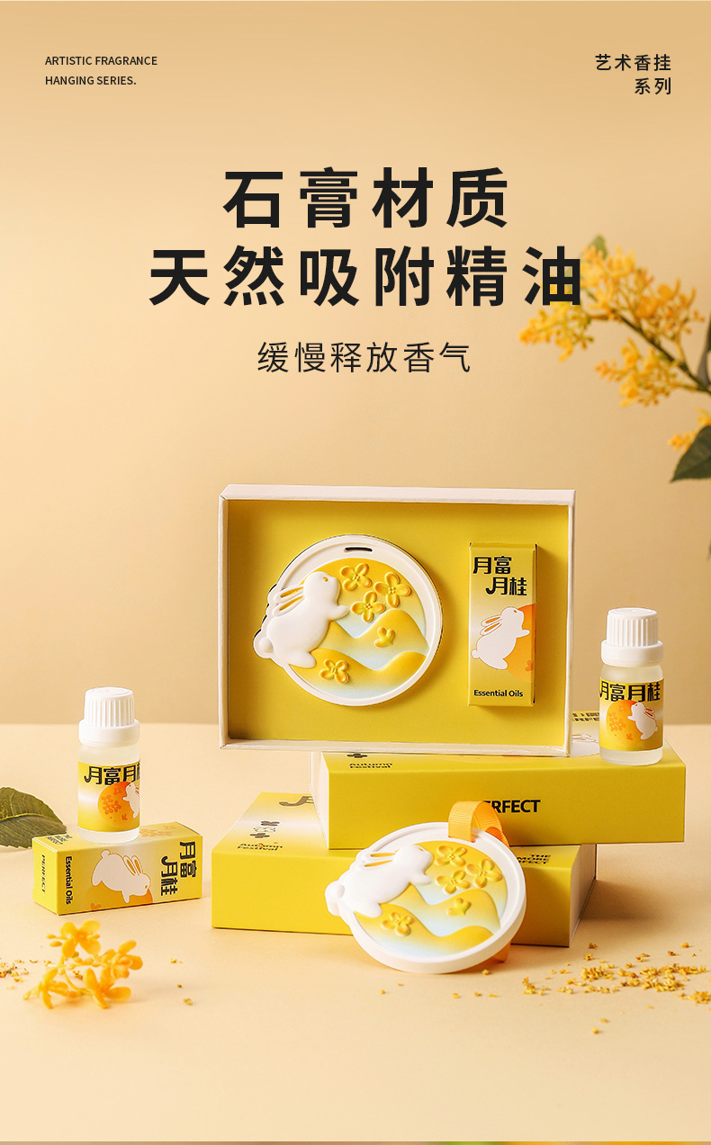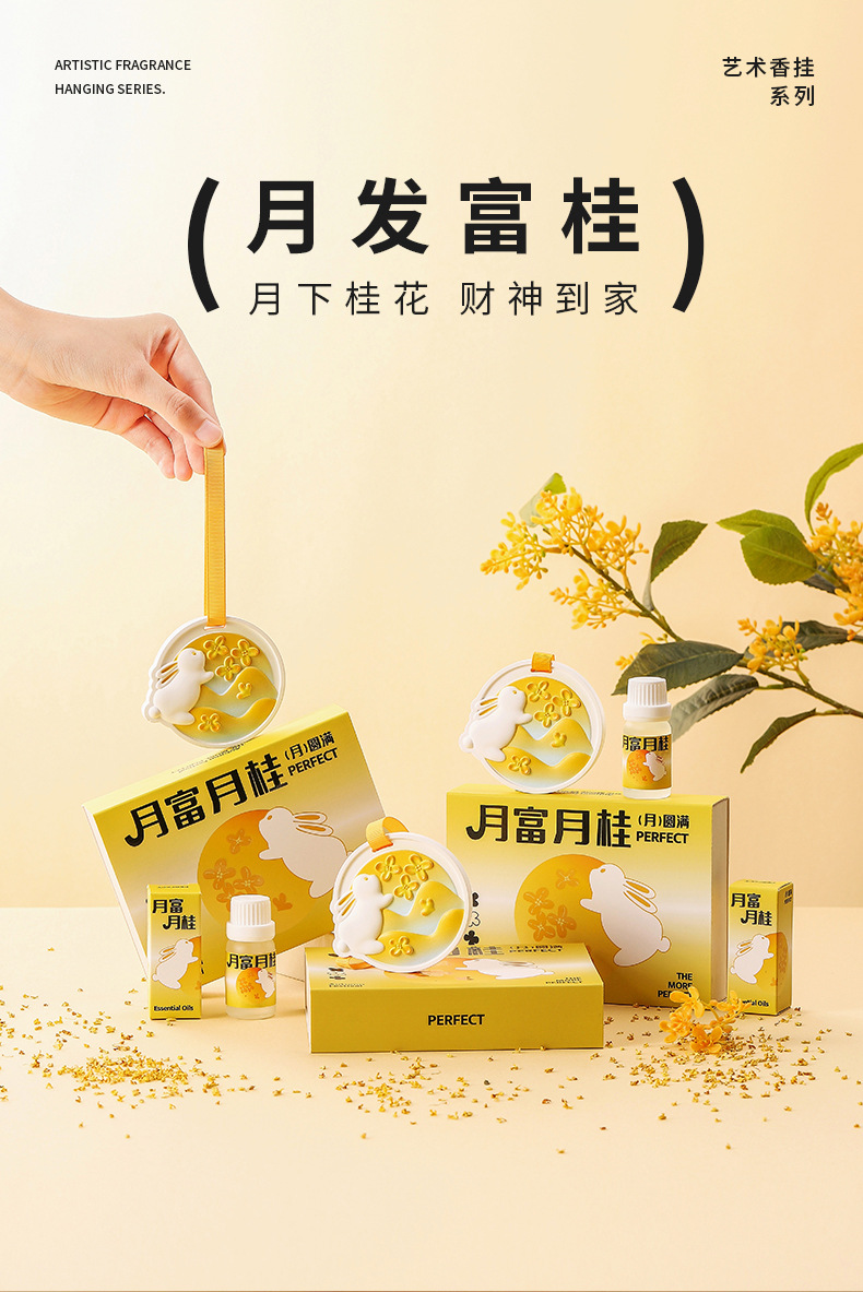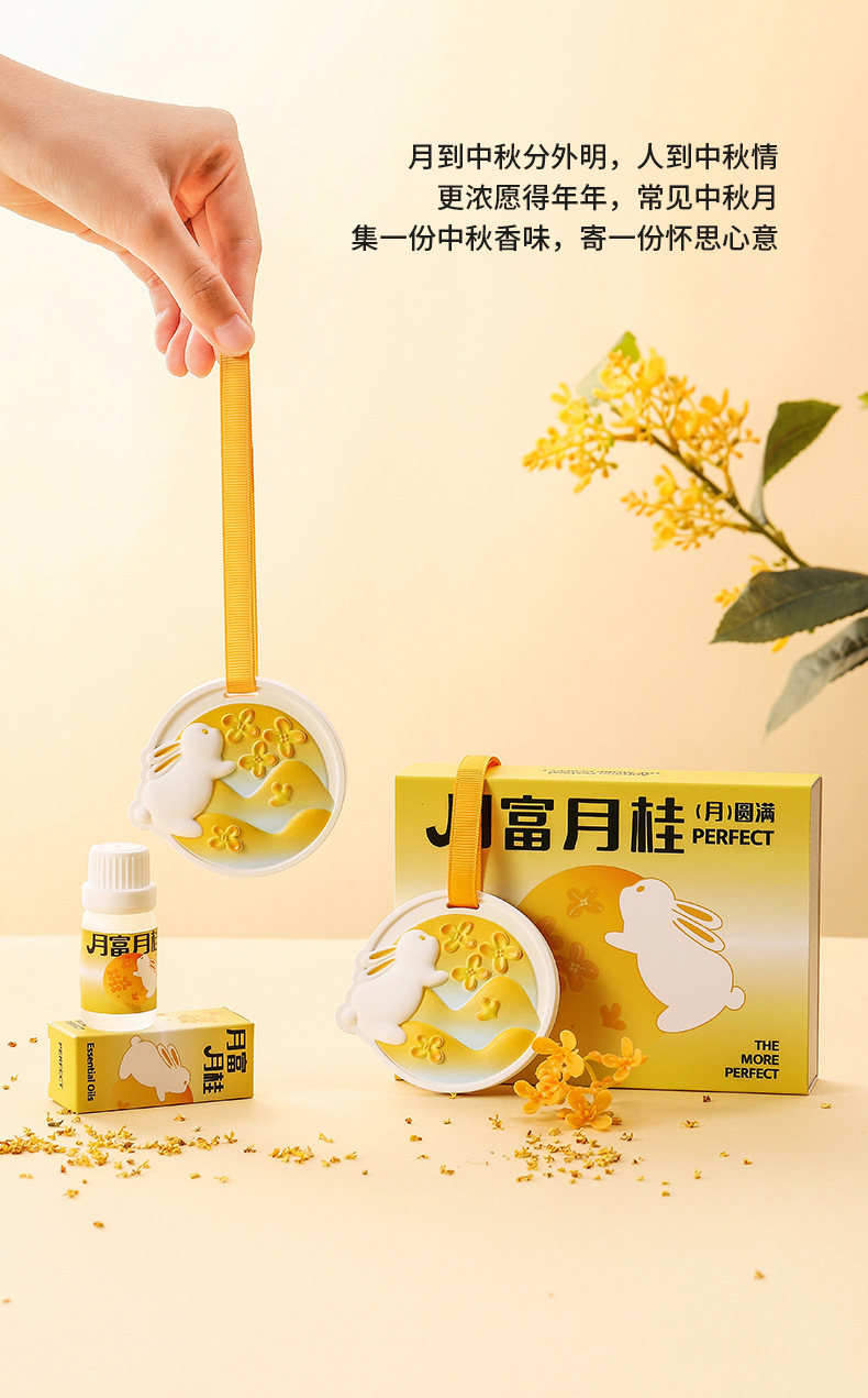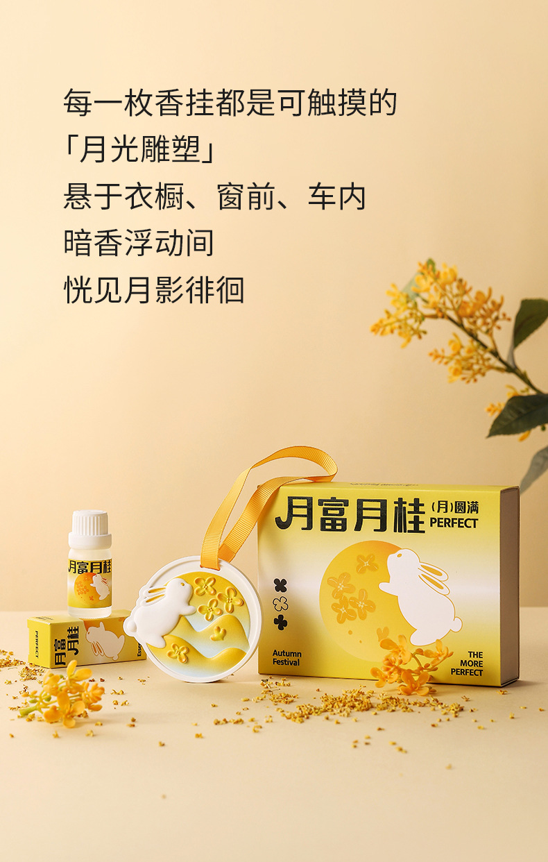 「月发富桂·礼盒装」中秋节石膏香薰礼盒衣柜月兔香挂居家日用室内车载扩香石伴手礼品