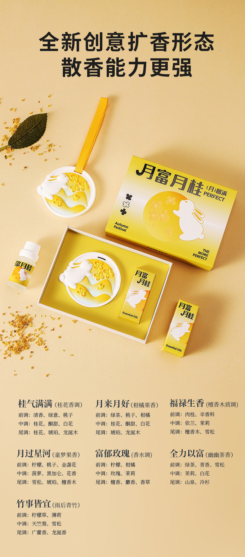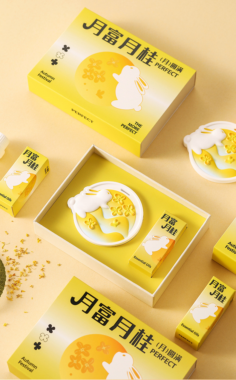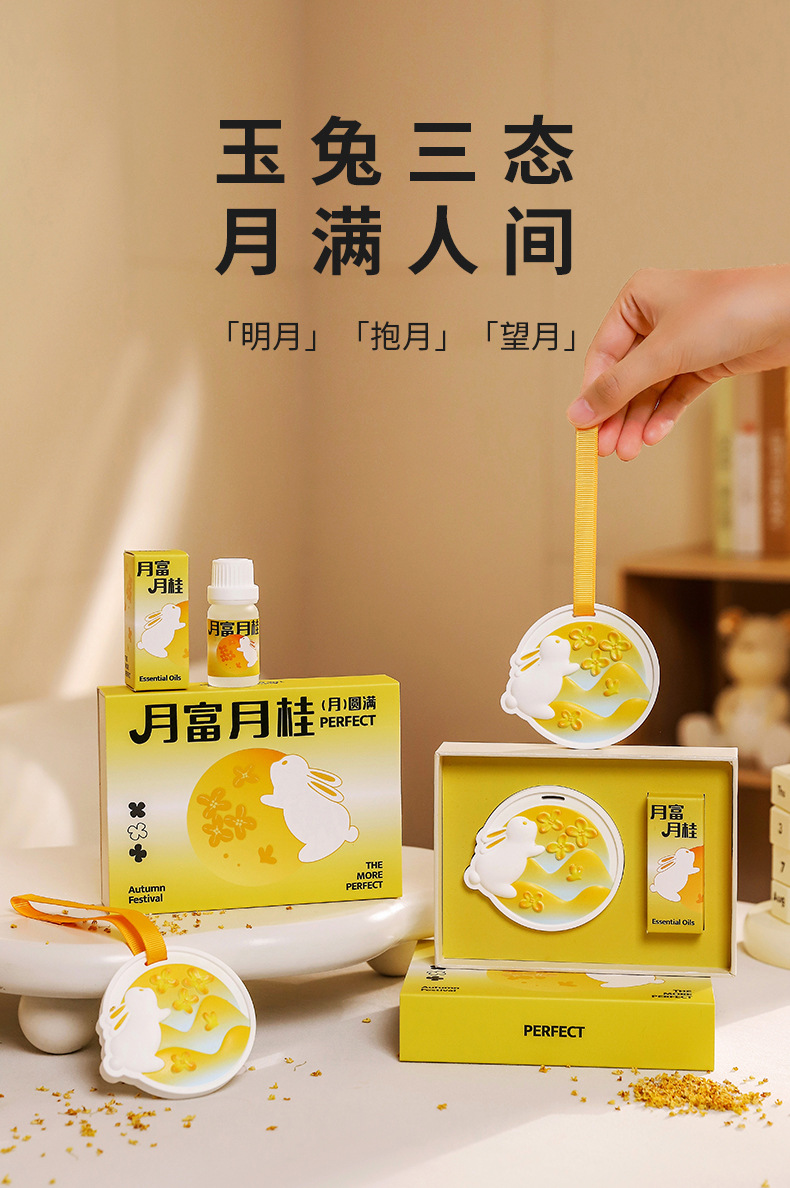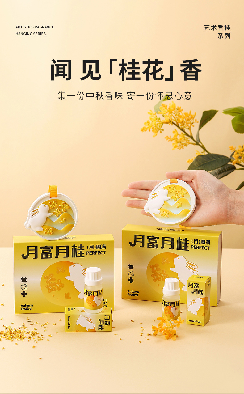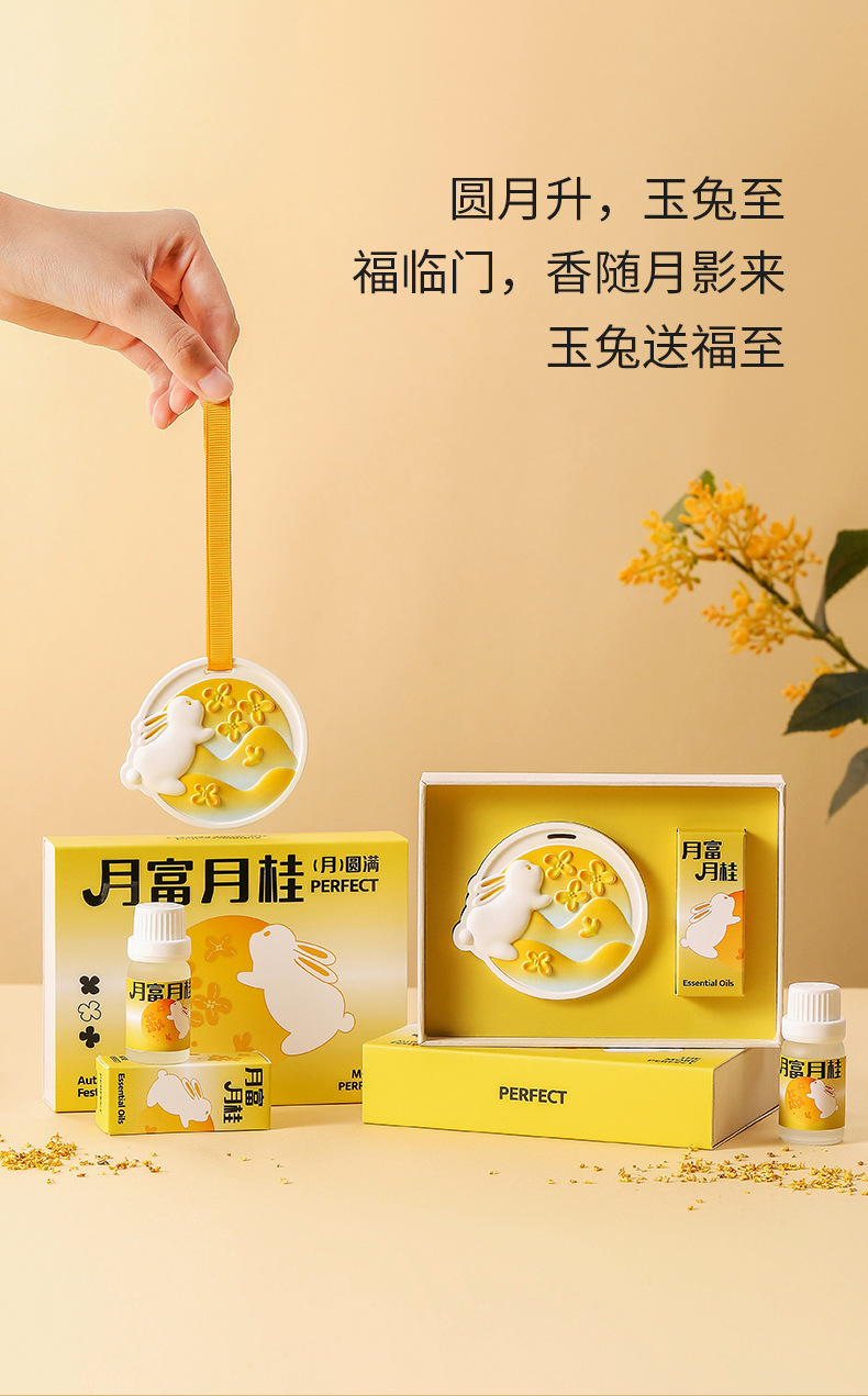 「月发富桂·礼盒装」中秋节石膏香薰礼盒衣柜月兔香挂居家日用室内车载扩香石伴手礼品