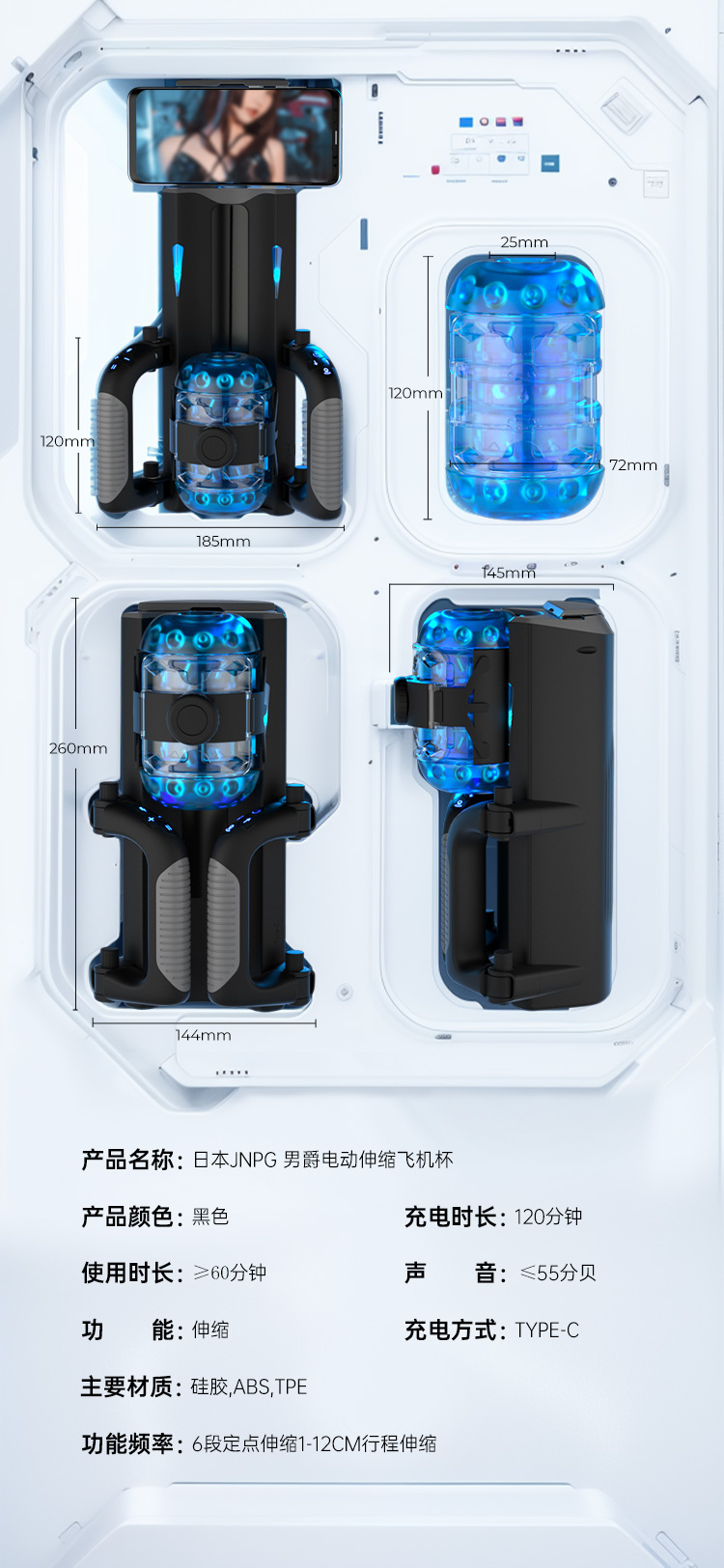 JNPG 男爵男用伸缩互动电动飞机杯