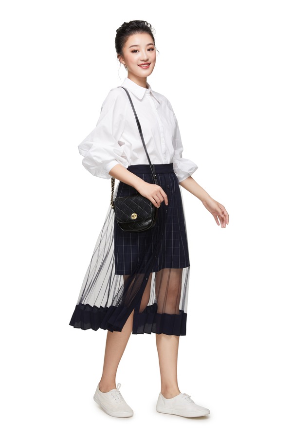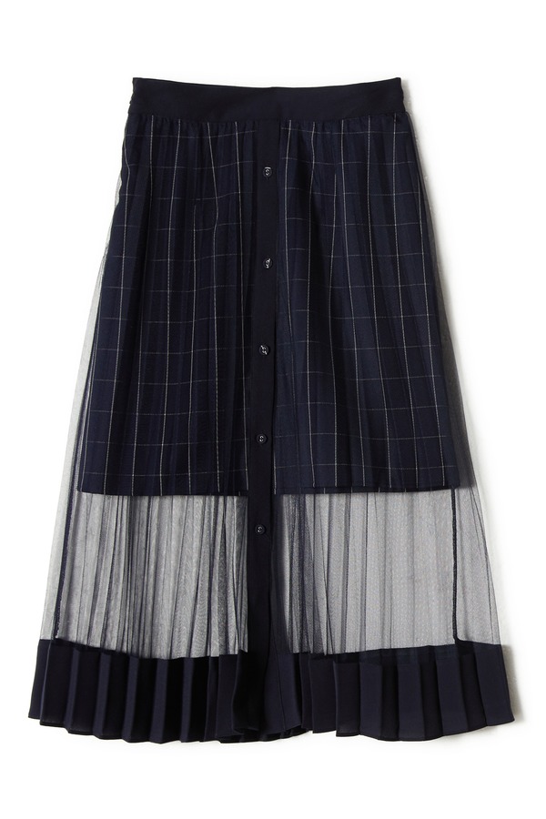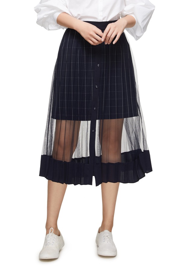 Betu百图 透视网纱双层式格纹半身裙 8924