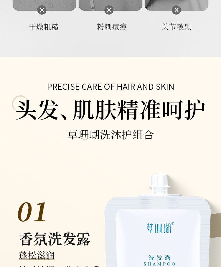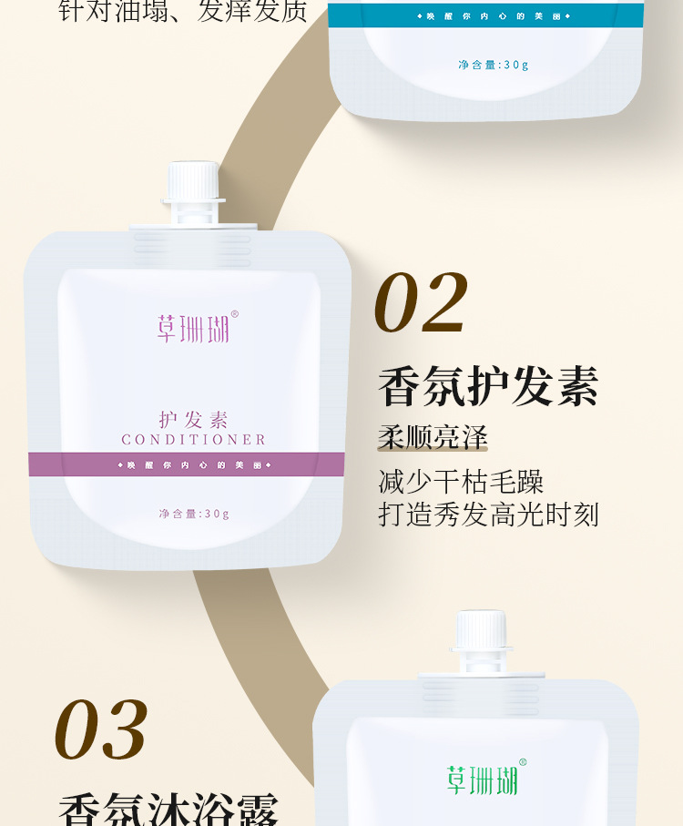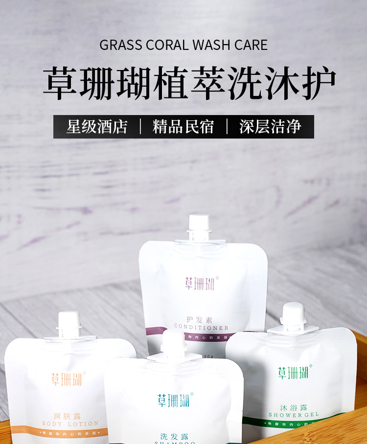 五星级酒店专用一次性洗发水沐浴露护发素草珊瑚袋装厂家批发代发