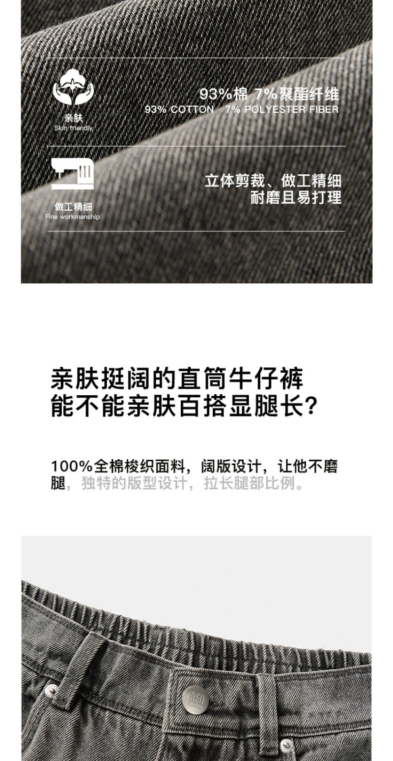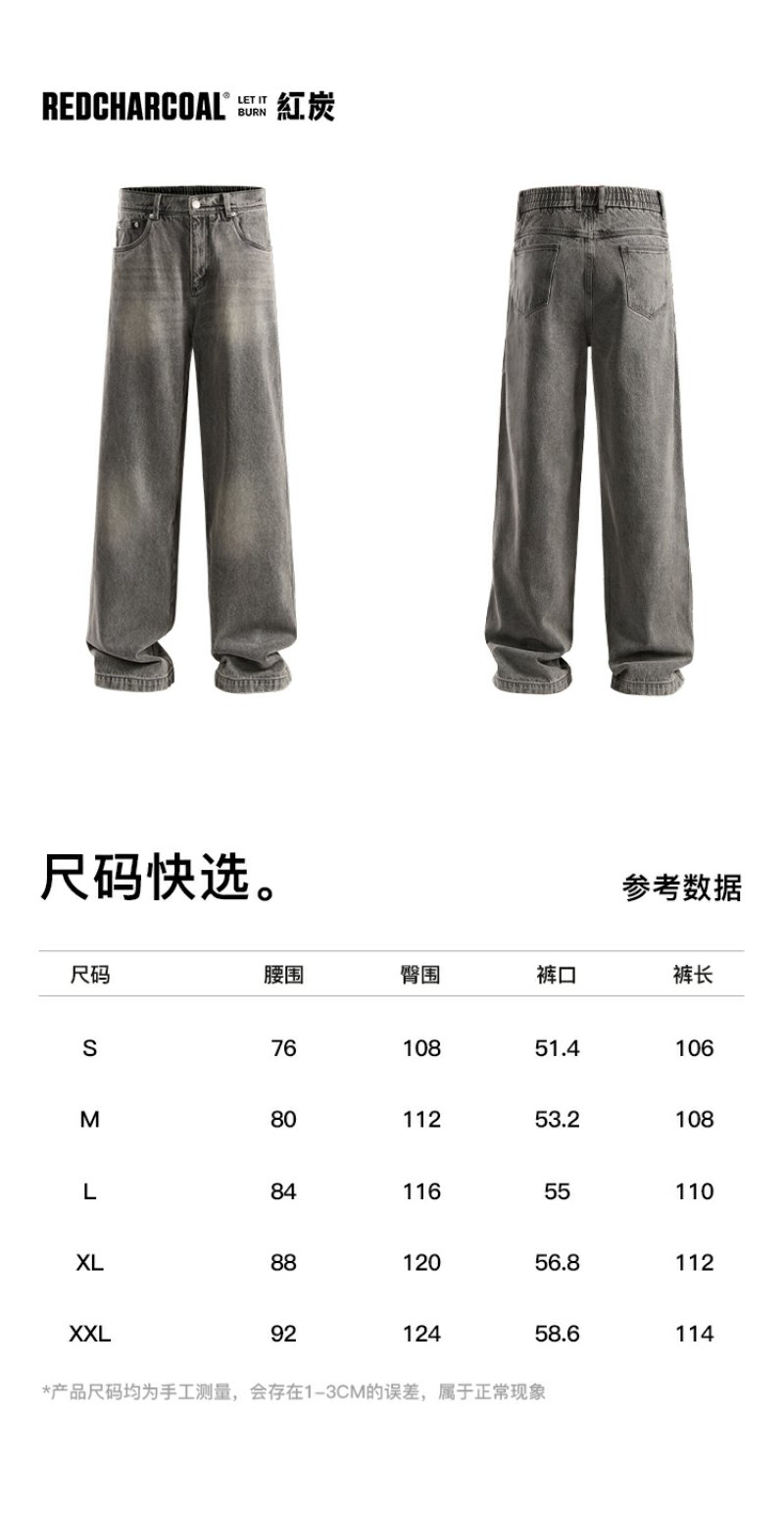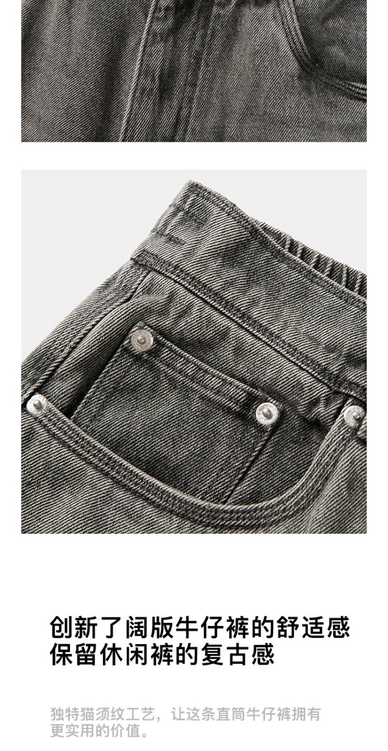 REDCHARCOAL红炭 水洗酵磨牛仔裤男直筒猫须纹男士美式做旧长裤