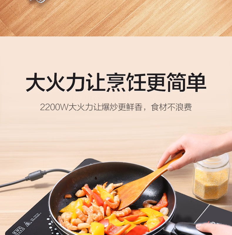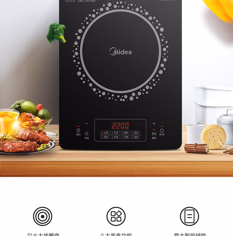 美的(Midea)电磁炉 2200W大功率 家用触控按键 耐用面板 八档火力 纤薄 定时功能电磁灶火锅炉 C22-RT22E01