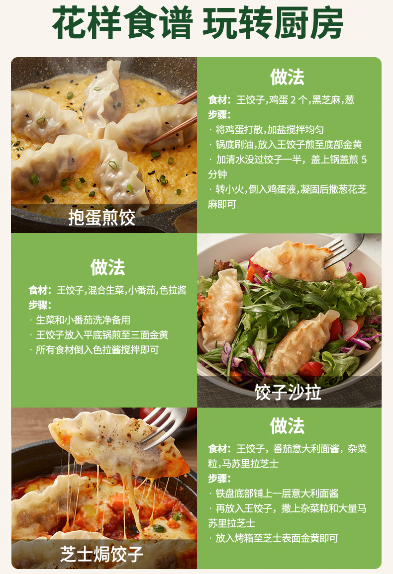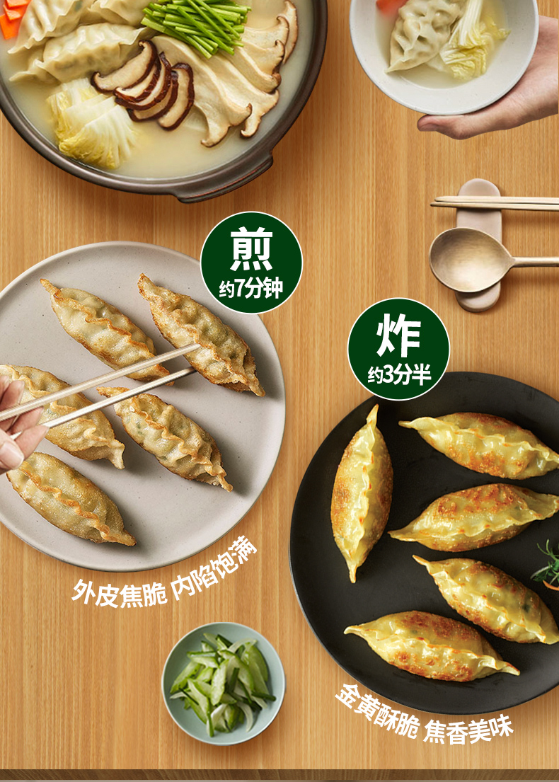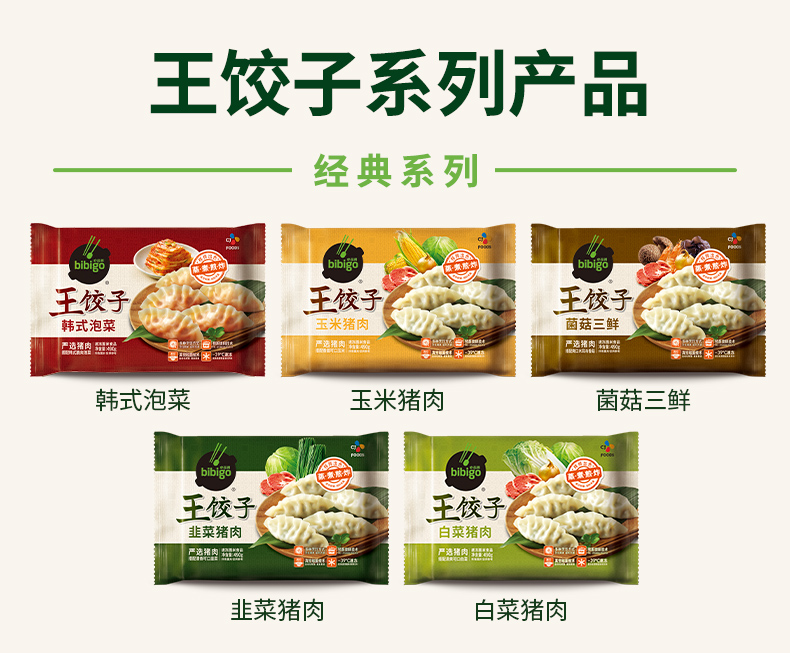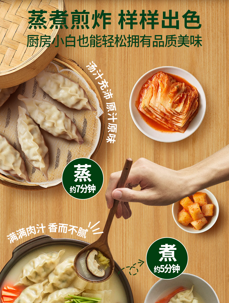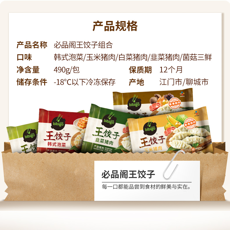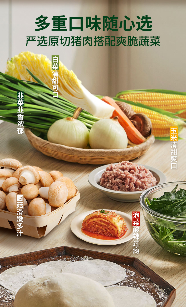 7袋到手必品阁王饺子精选3190克,三个热销口味(泡菜×2+菌菇×2+玉米×2)赠煎饺250g×1
