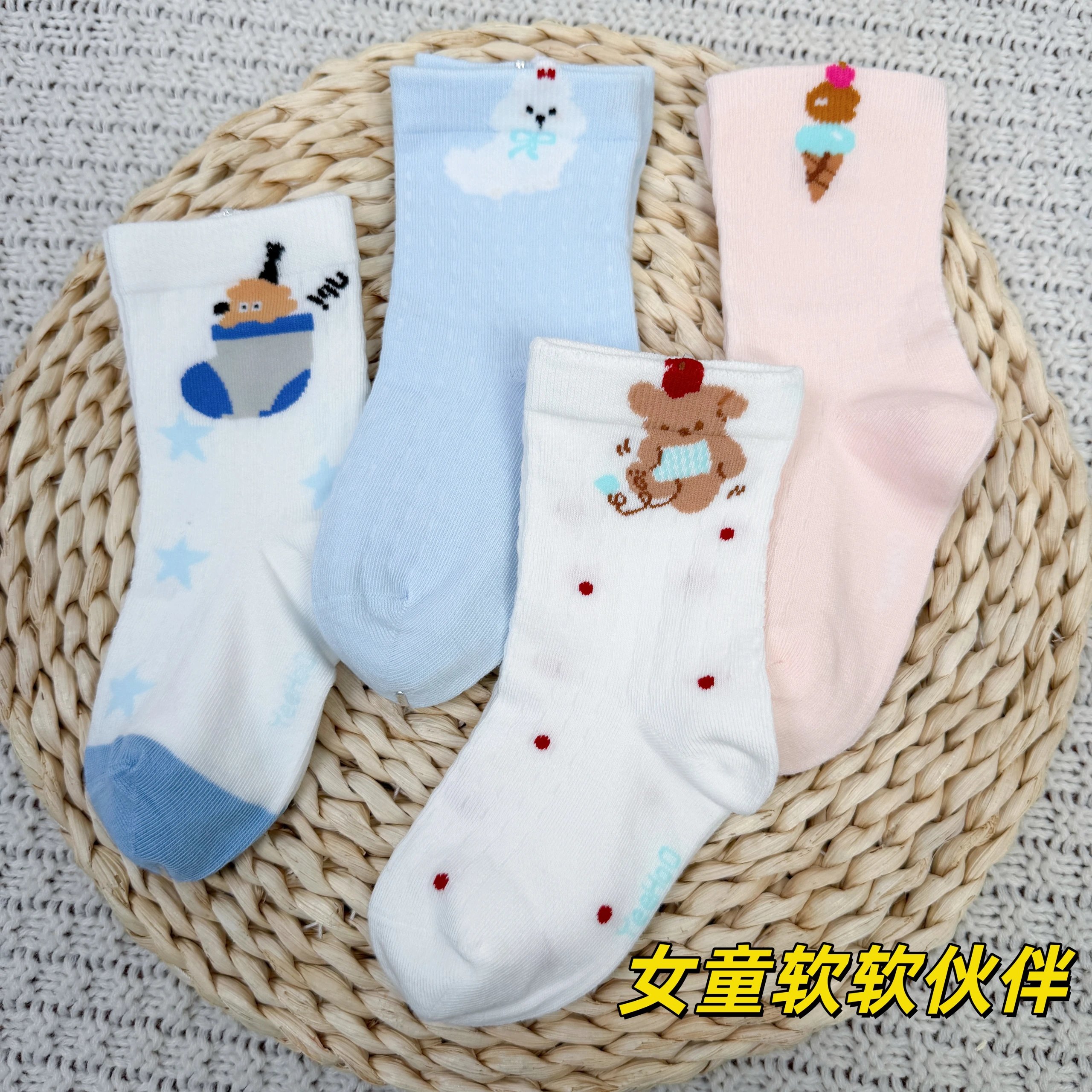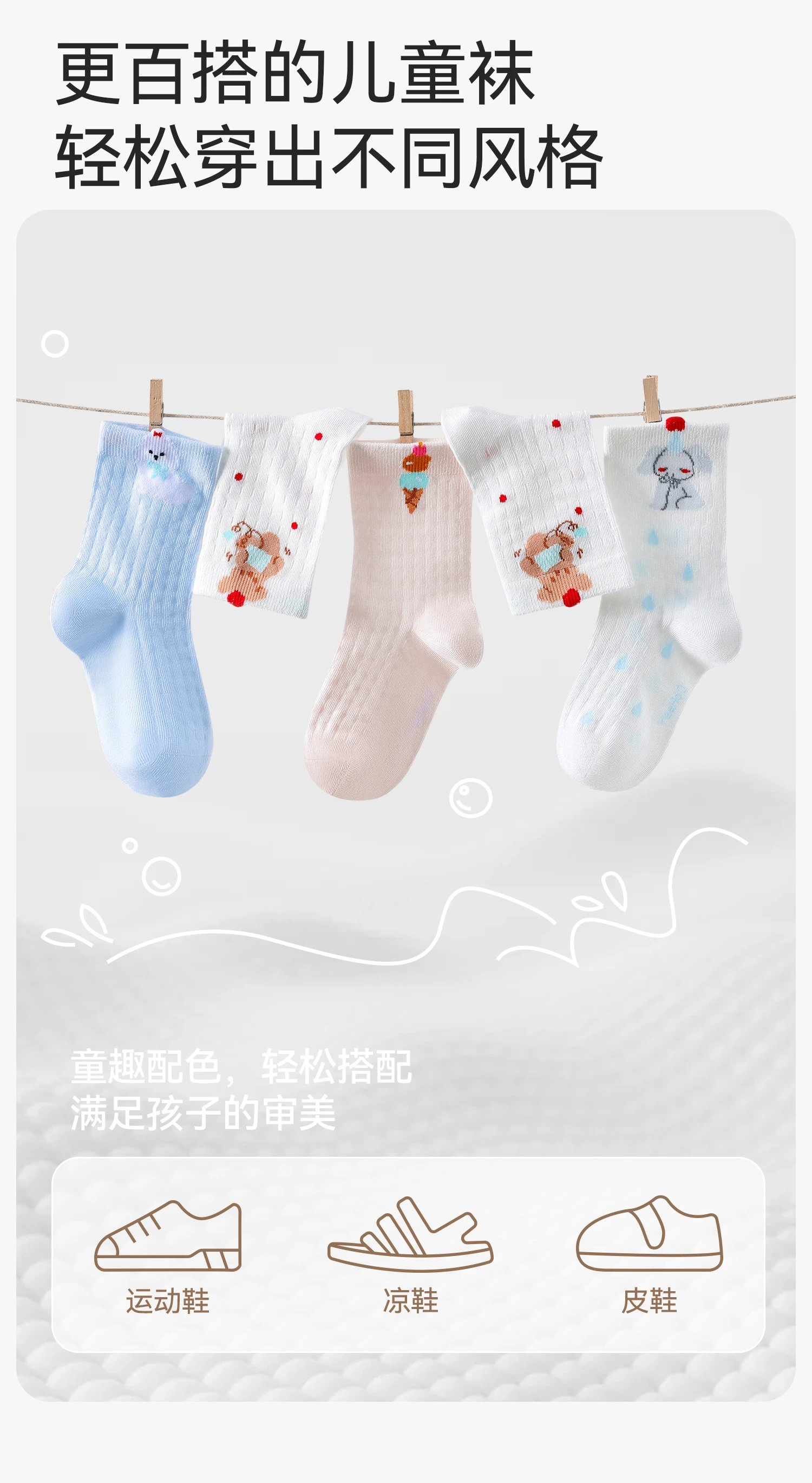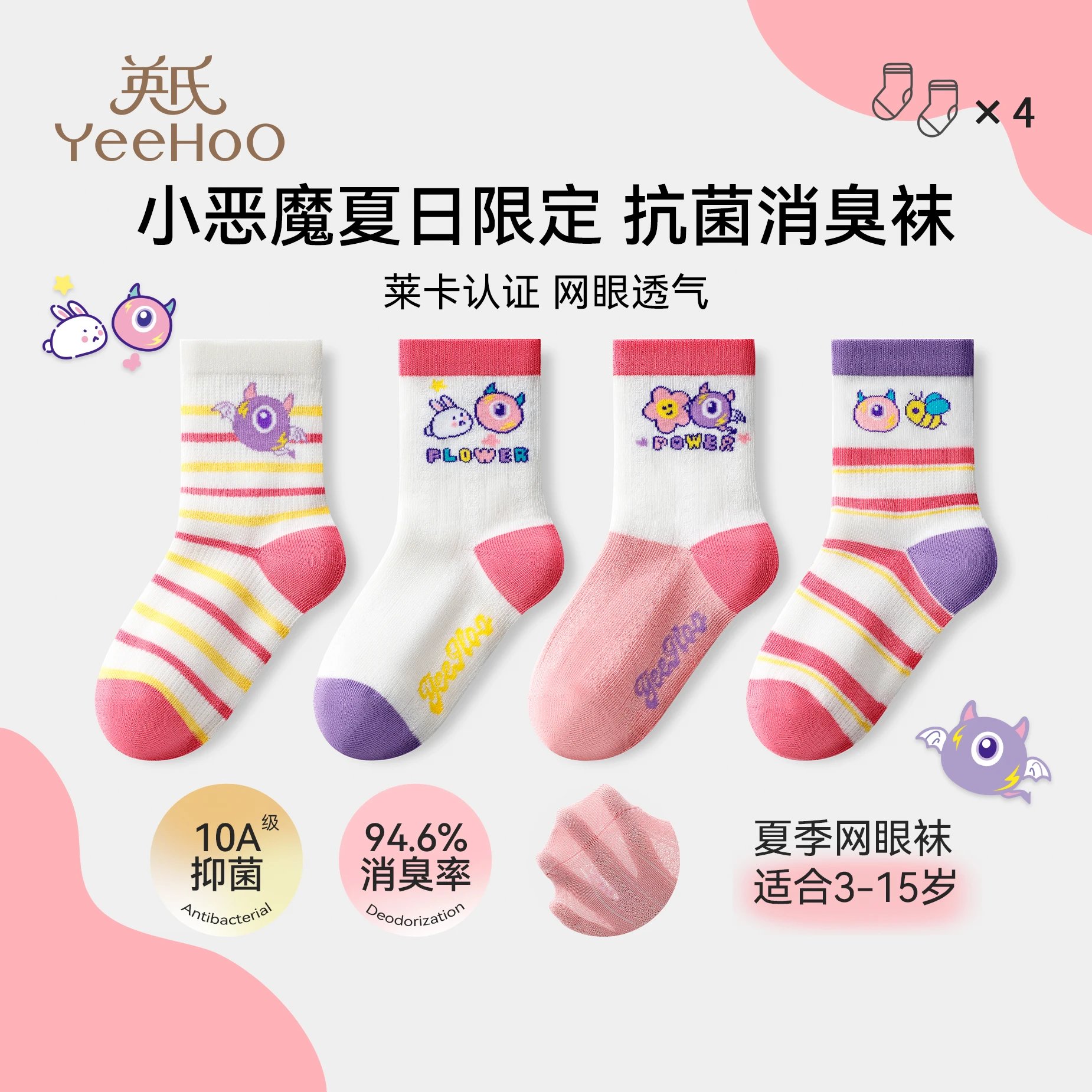 选袜不踩坑!【10A抑菌4双装】英氏男女童春夏款薄款透气网眼棉质中筒袜