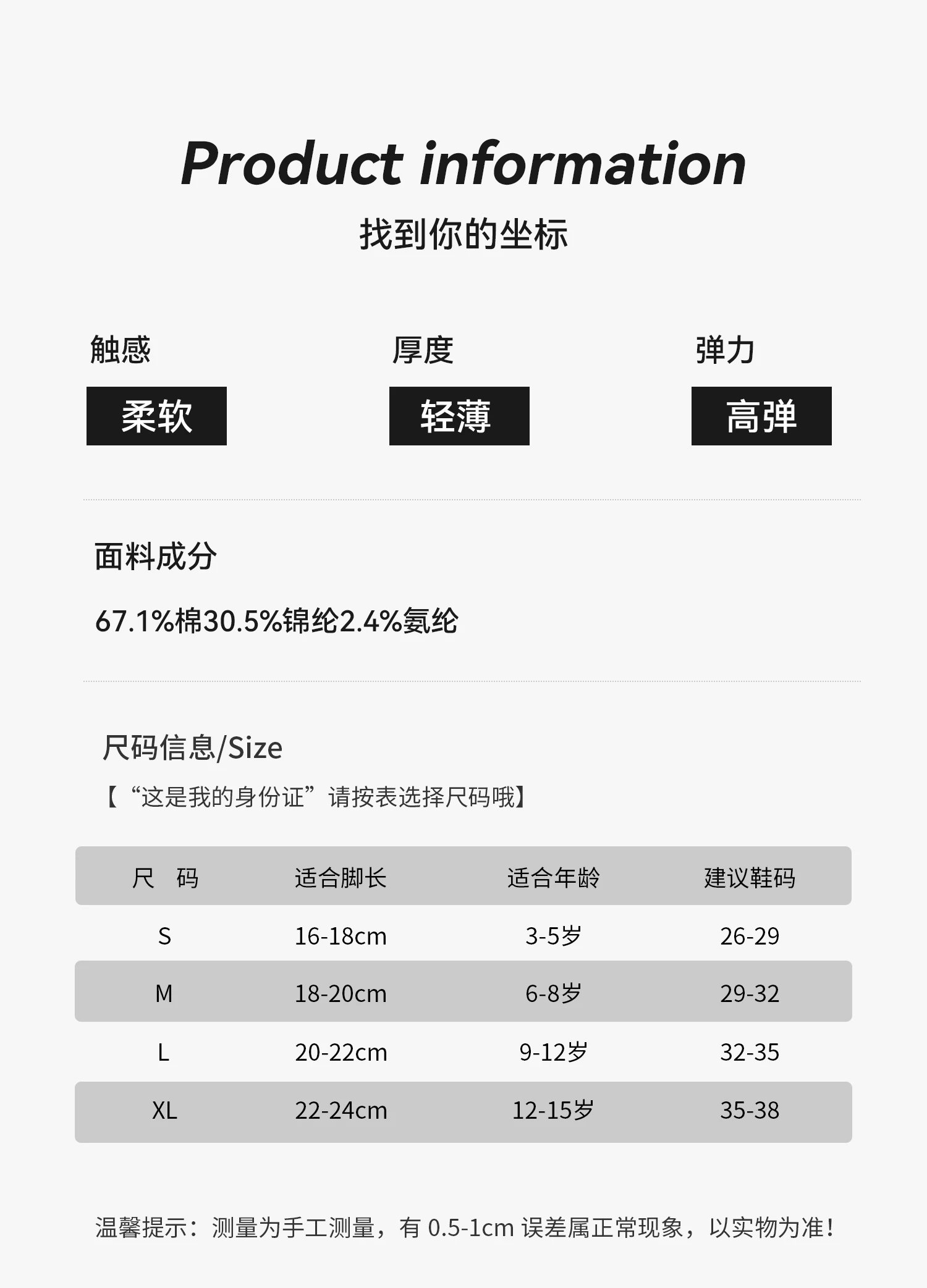 不管是上学走路、户外疯跑、运动蹦跳,袜子稳稳贴住小脚,不滑落、不跑偏、不顶脚,不用频繁停下来整理,贴合不勒,稳固不掉,穿一次就爱上~