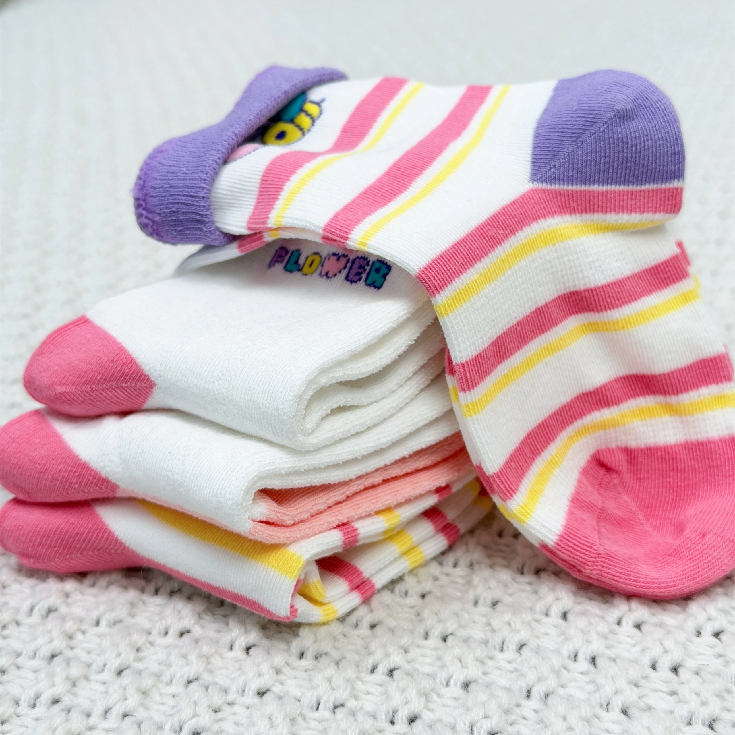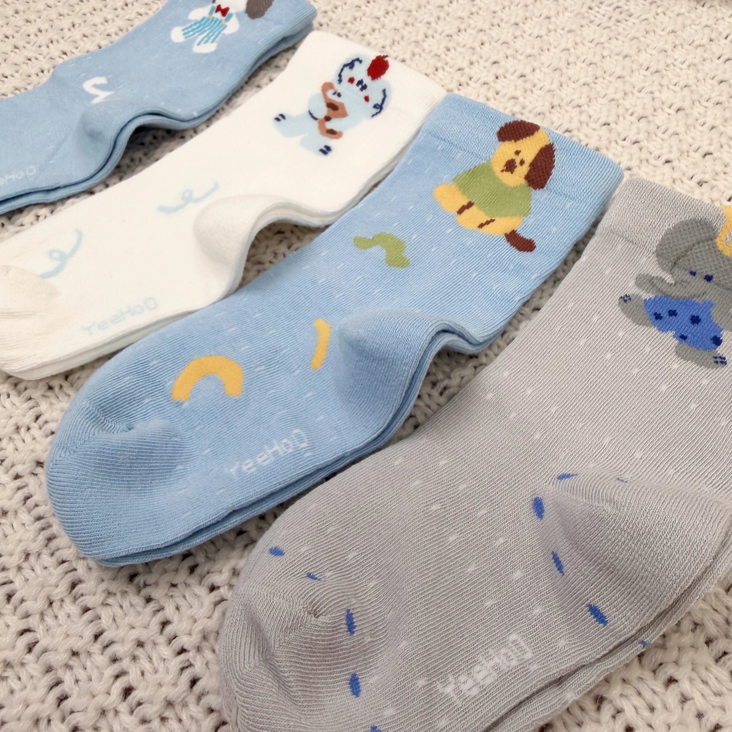 袜底加厚防滑纹路,孩子跑跳不易摔跤;袜口加固缝线,耐洗不易起球,4双装配色清新,日常轮换超方便。