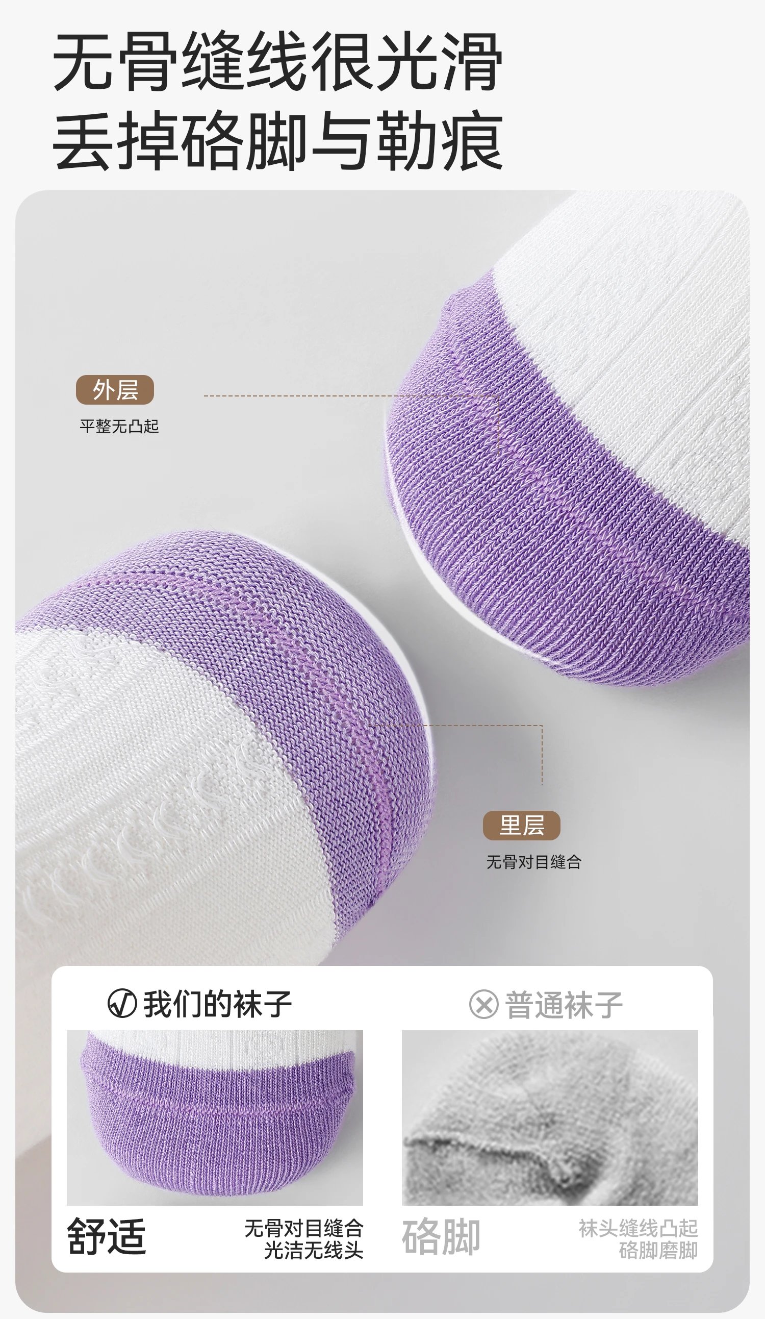 这款采用一体无骨缝合工艺,袜头平整光滑,没有硬棱、没有凸起线头,真正做到零摩擦、零硌脚,就像没穿袜子一样自在。