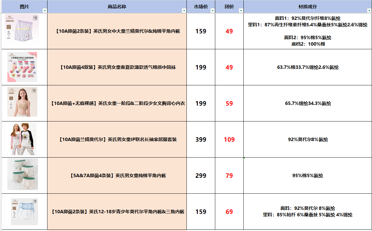这次专场覆盖3-18岁孩子的贴身刚需——内裤、袜子、家居服、少女文胸全配齐。