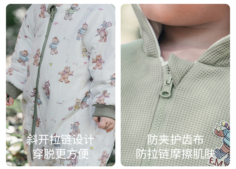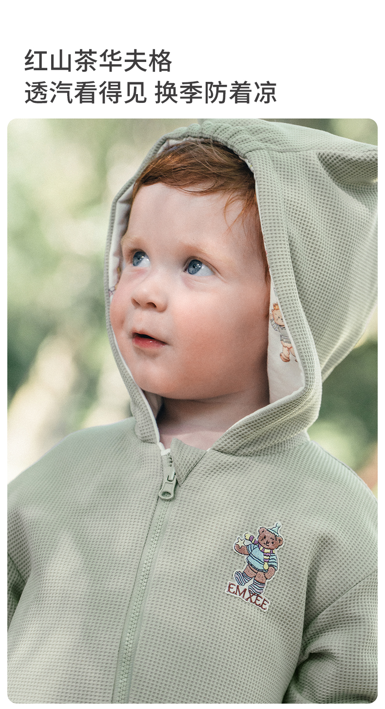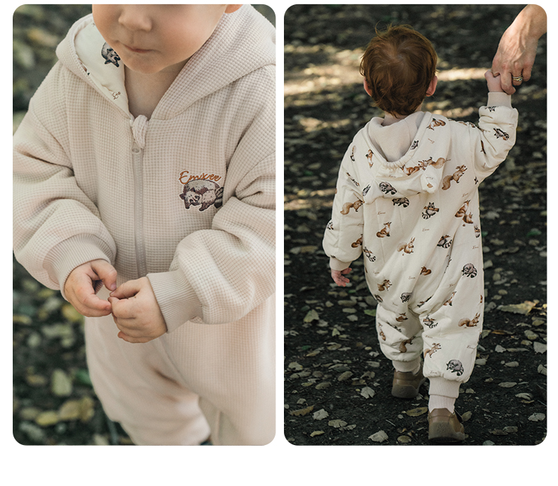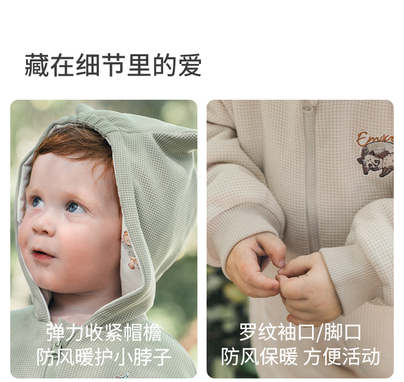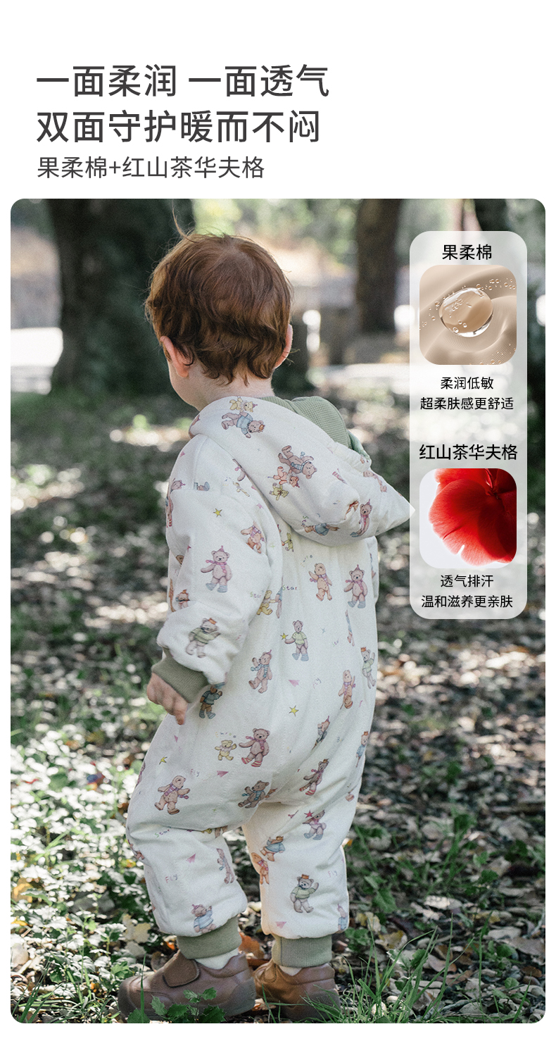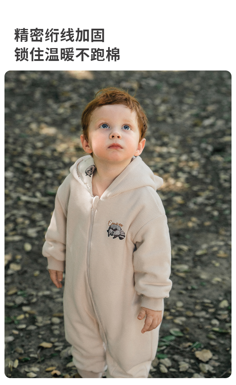 【宝宝服饰】嫚熙婴儿连体衣山茶华夫格宝宝连身衣秋冬加厚保暖外出爬服哈衣