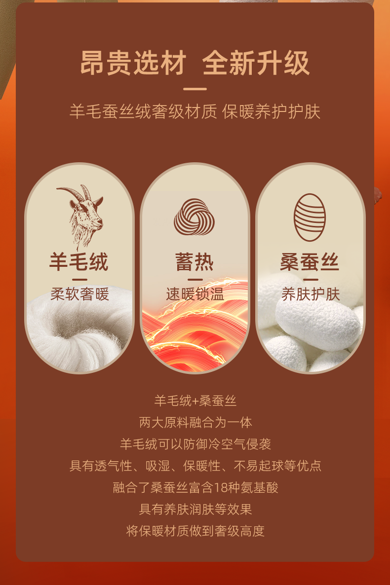 ③羊绒中腰暖腹,蚕丝养肤,暖宫防寒,呵护健康