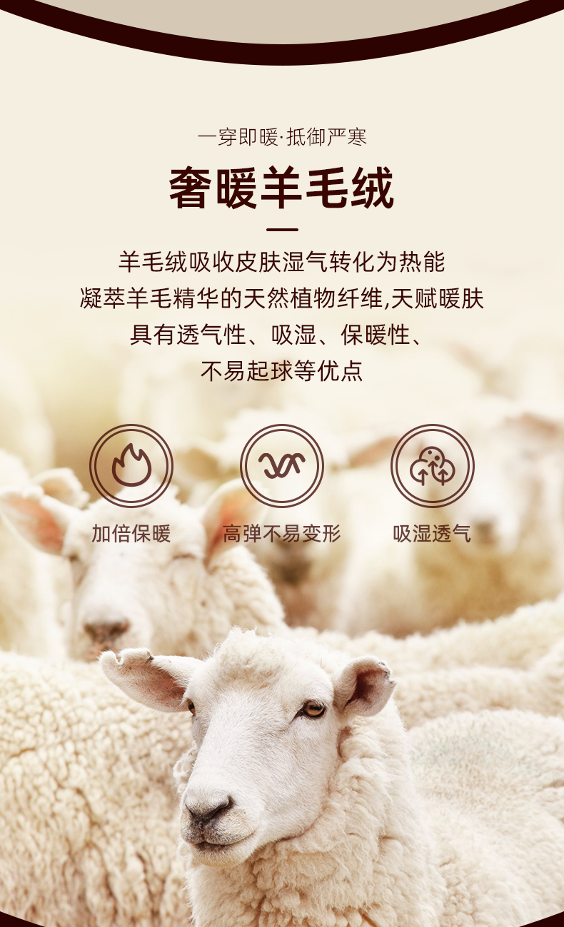 ⑥羊毛绒速暖锁温,双面磨毛绒亲肤感,蓄热锁温