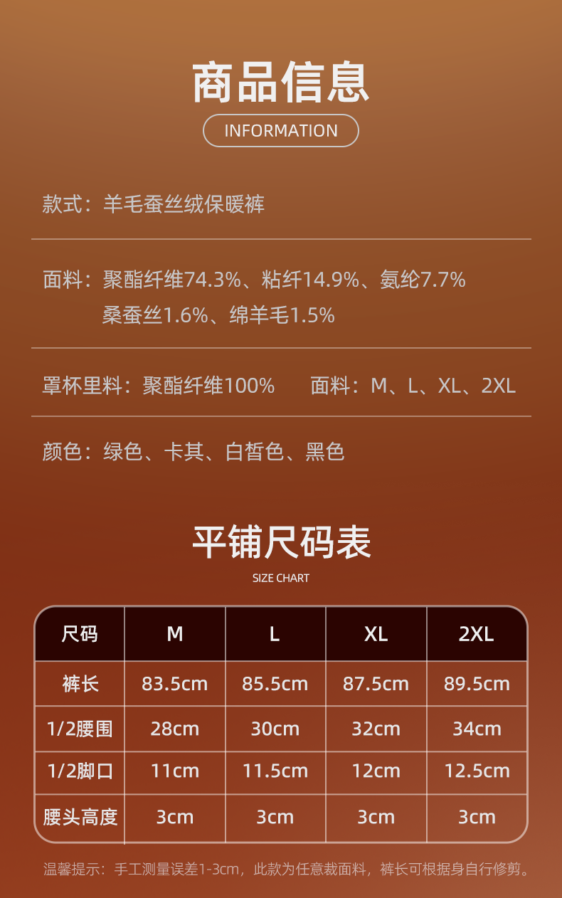 商品名称:羊毛蚕丝绒保暖裤PW617#