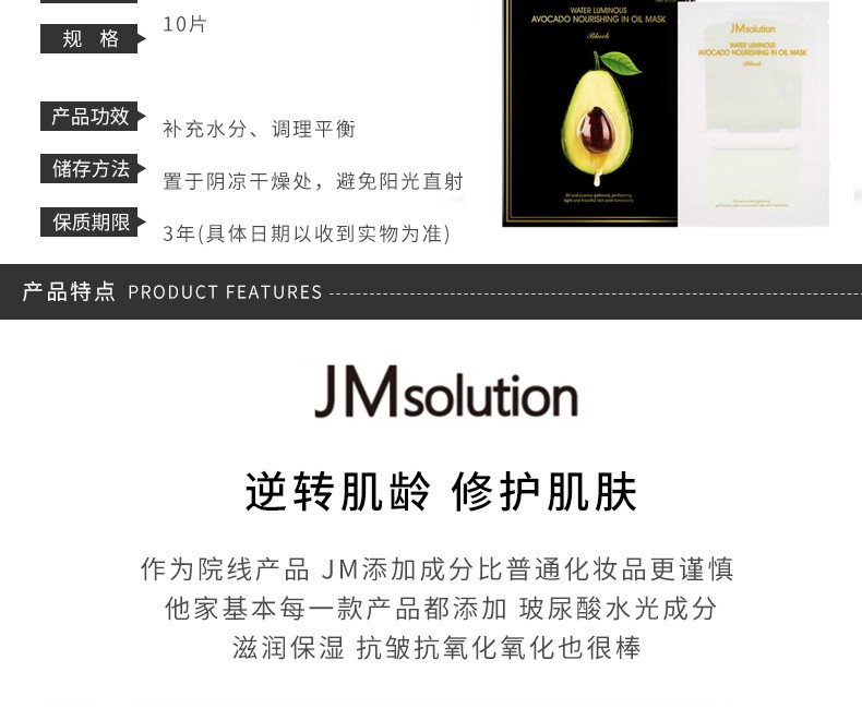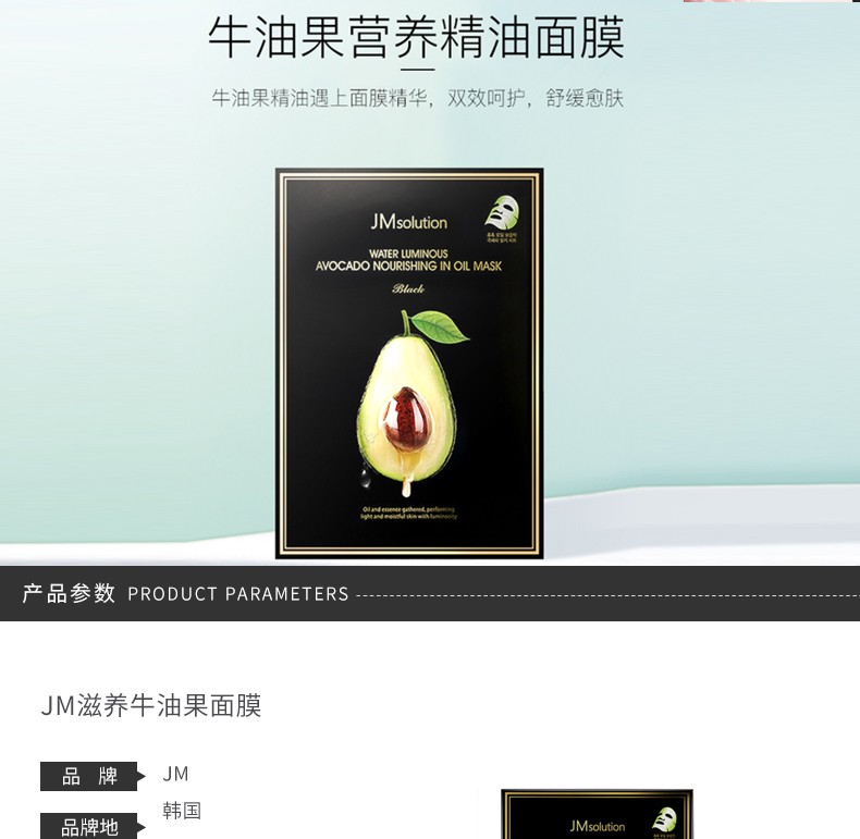 JM SOLUTION 水滋养牛油果营养精油面膜 10片 韩国