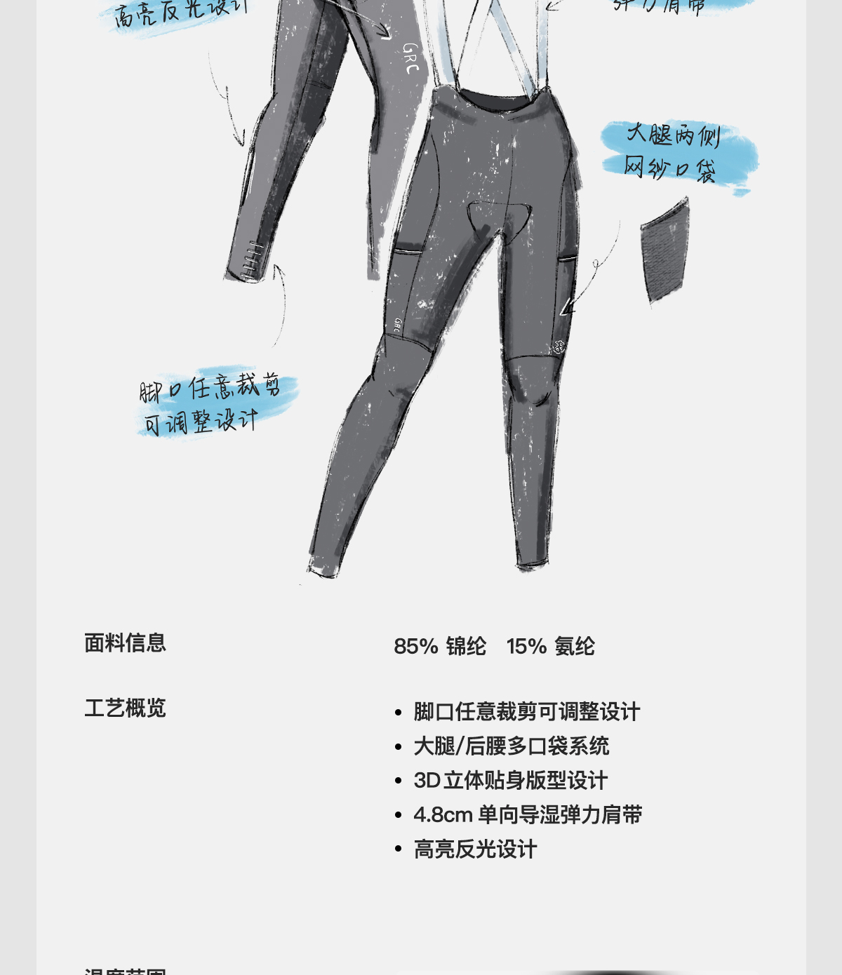 GRC桀骜无尽秋冬新款uppervoid联名抓绒保暖反光背带骑行裤长裤