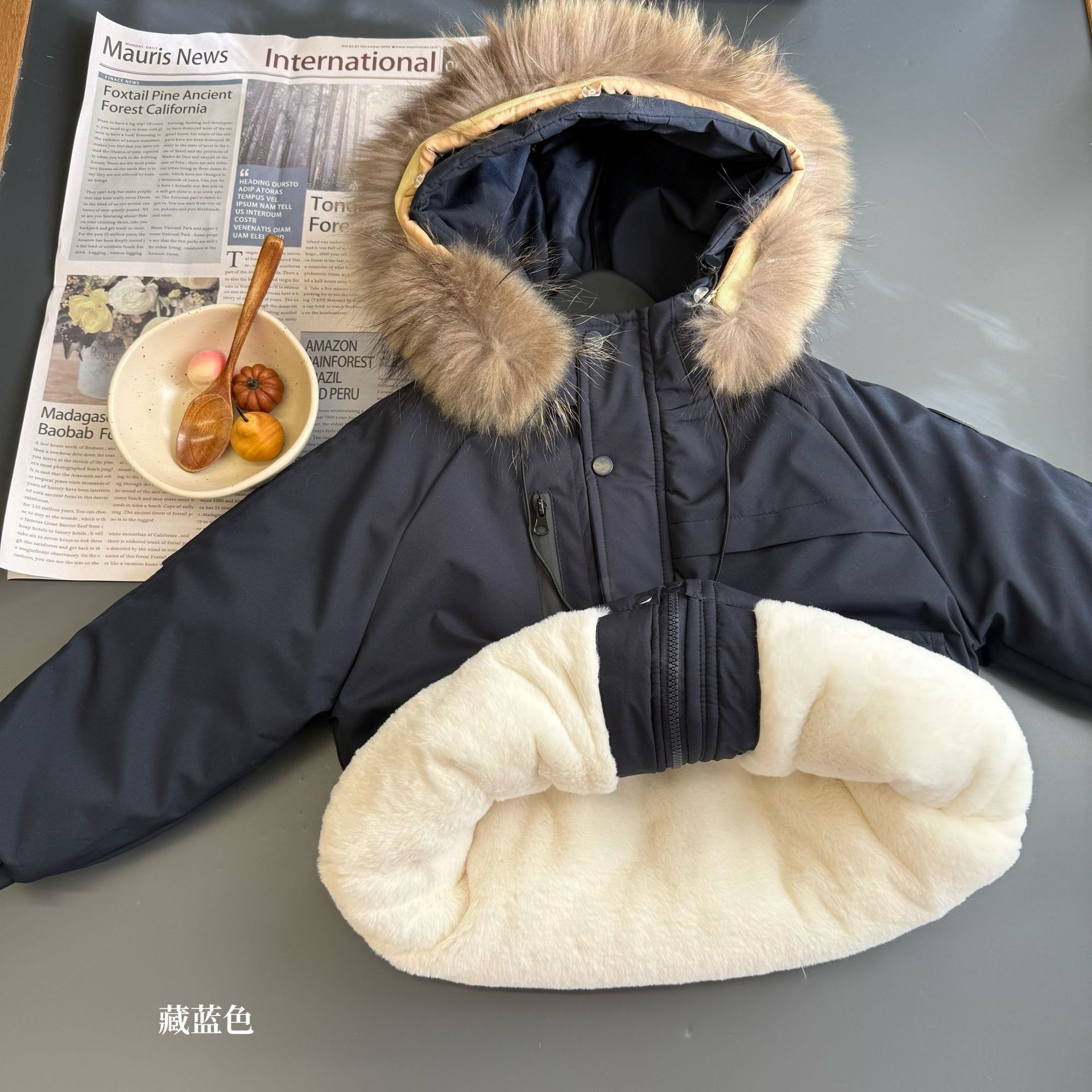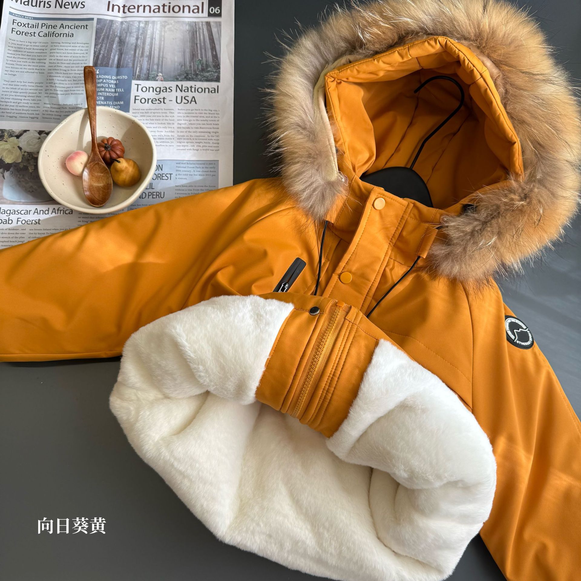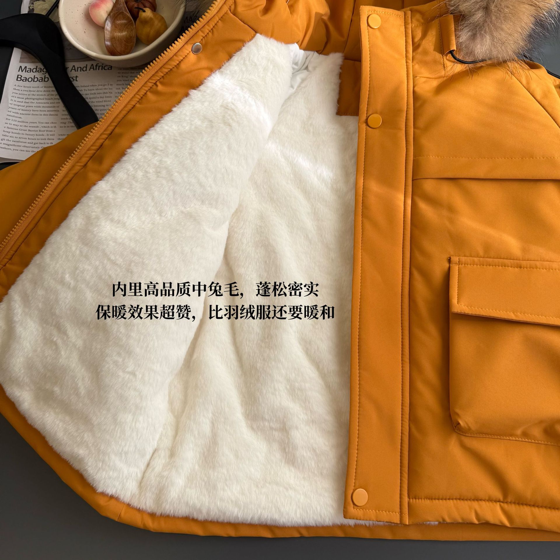 3-5天发货(爆单5-7天)!!!【保暖服饰丨吾家加棉加毛毛领派克棉服 】120-170码可选,柔软蓬松,防风保暖,内里兔毛亲肤细腻,做工板正,立体工装口袋,版型宽松,可包容多种身材,男孩女孩都适合~