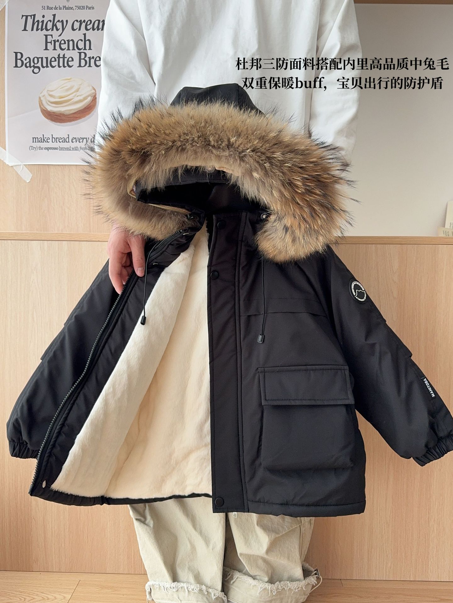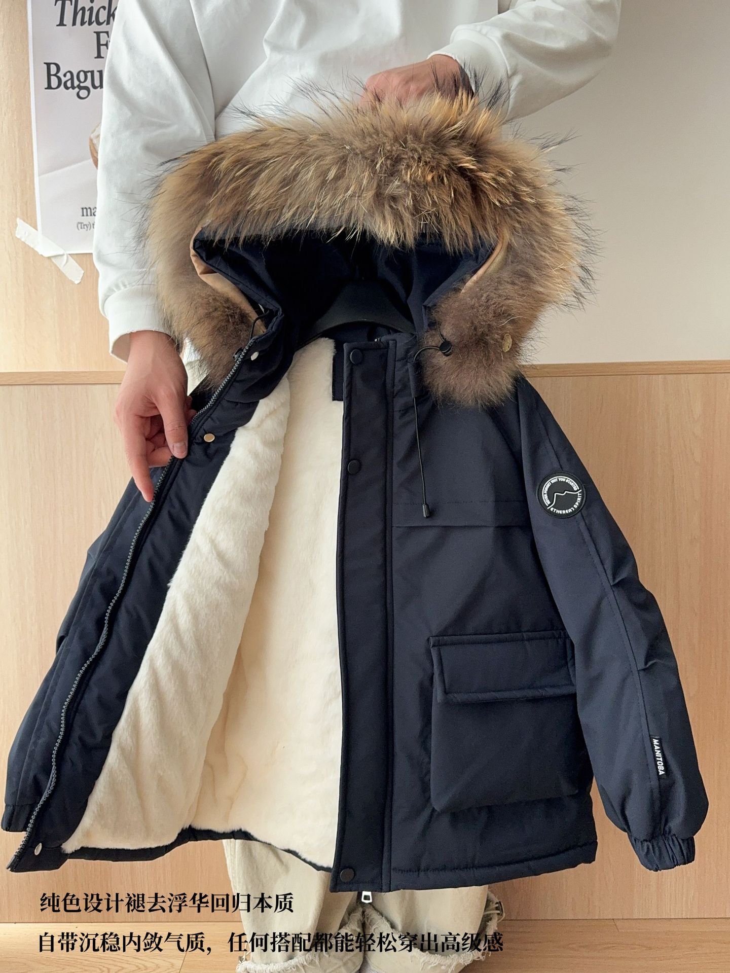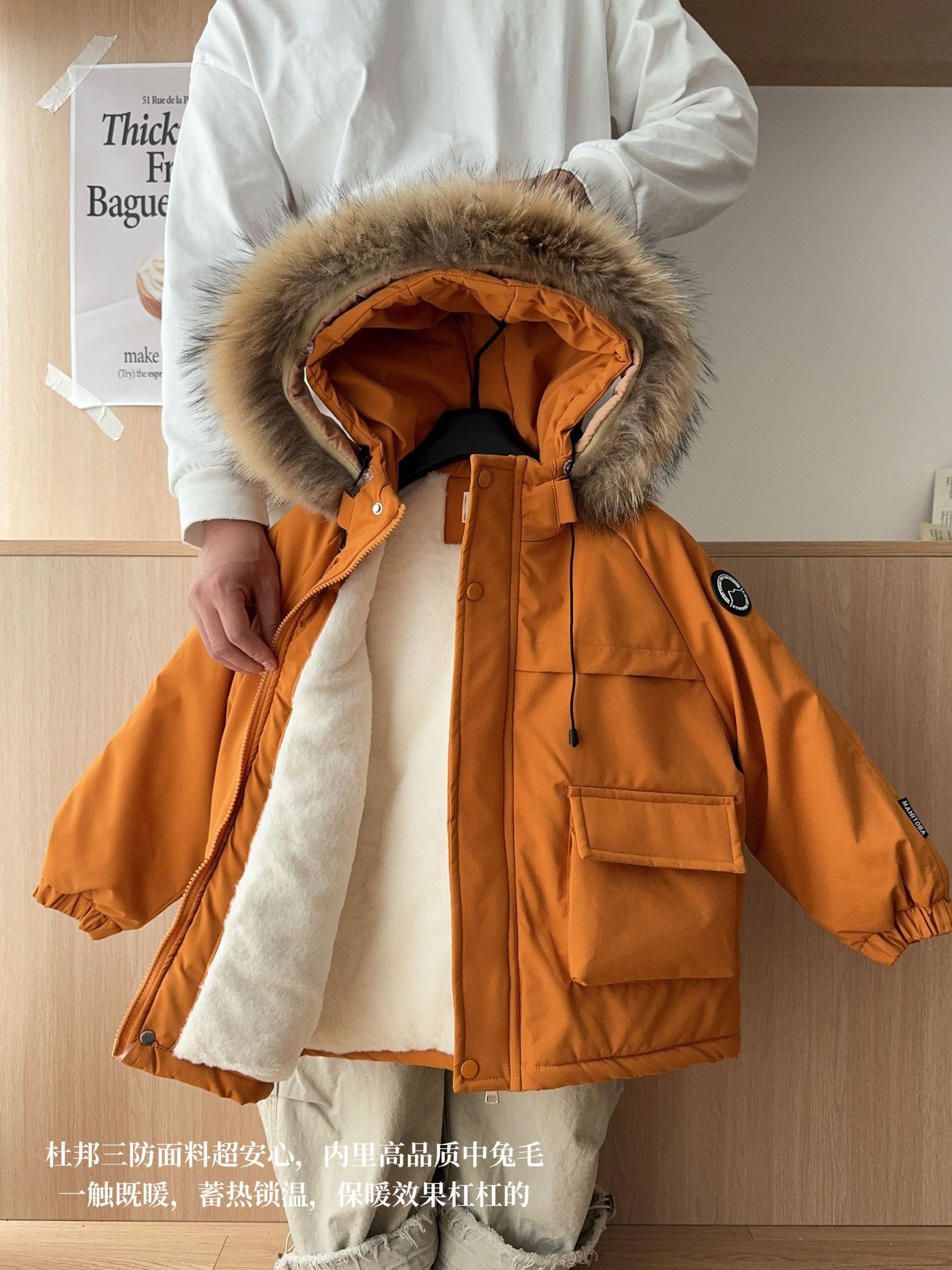 3-5天发货(爆单5-7天)!!!【保暖服饰丨吾家加棉加毛毛领派克棉服 】120-170码可选,柔软蓬松,防风保暖,内里兔毛亲肤细腻,做工板正,立体工装口袋,版型宽松,可包容多种身材,男孩女孩都适合~