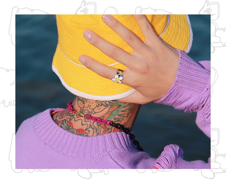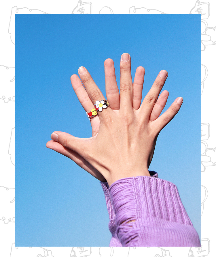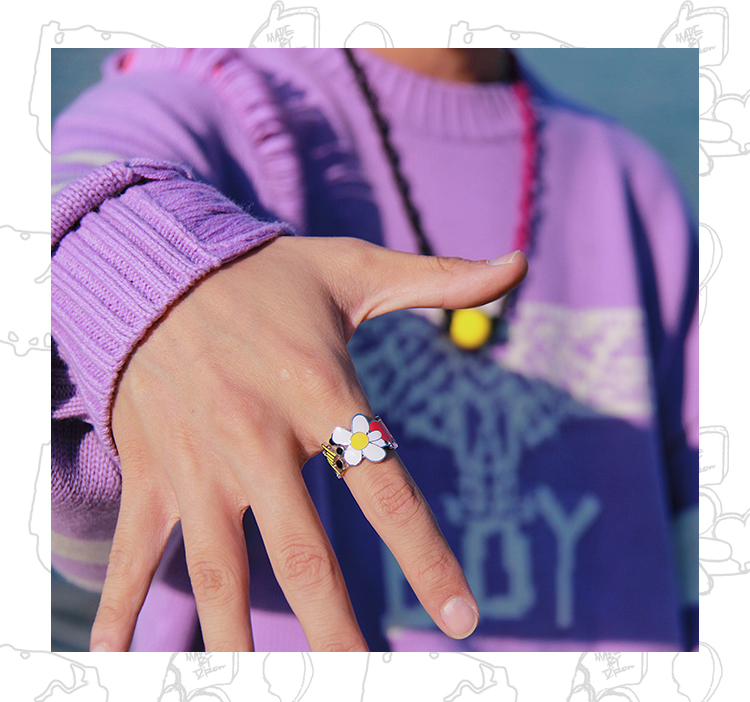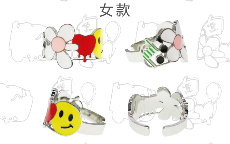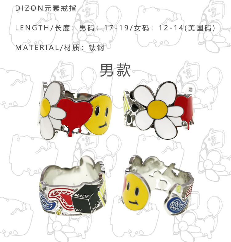 MADE BY DIZON 潮流元素戒指 情侣雏菊花朵戒指 骰子爱心荆棘笑脸