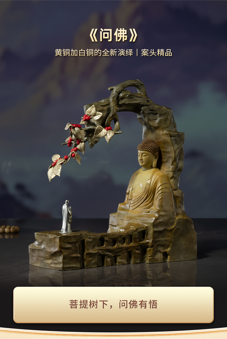 铜师傅《问佛》新国风佛像摆件 家居客厅装饰工艺品摆件 案头精品