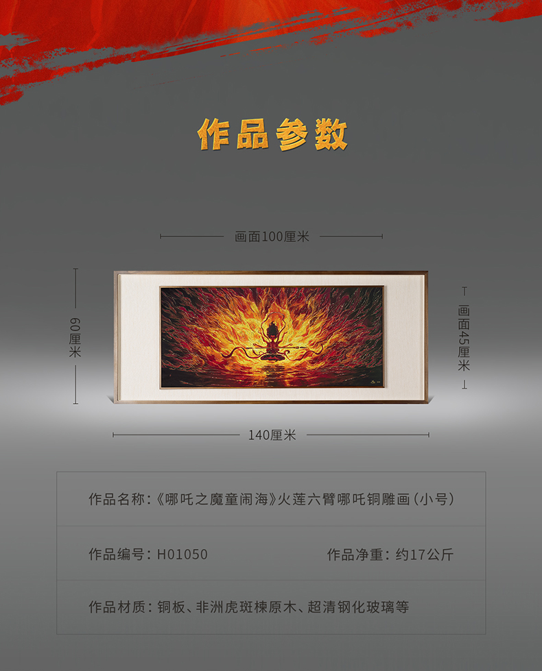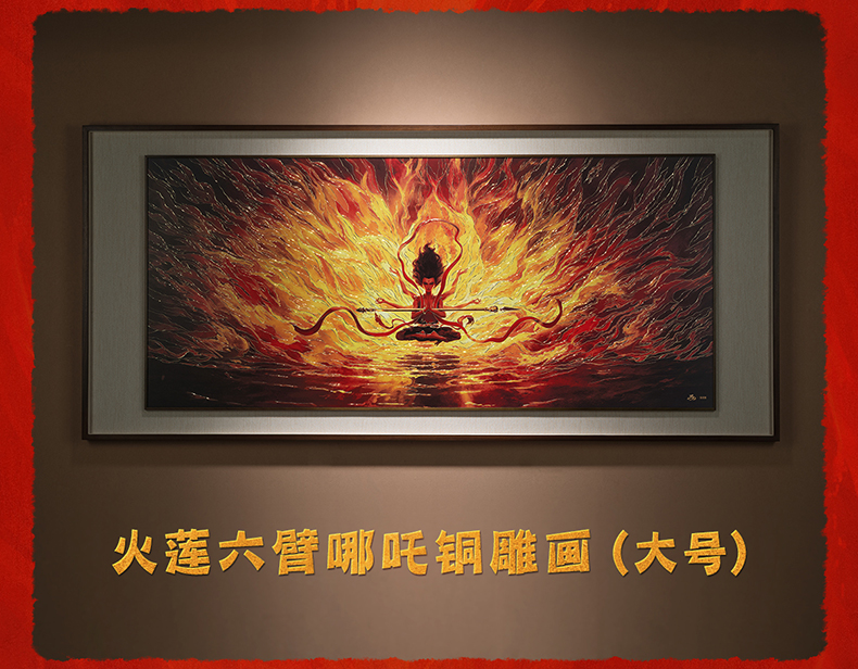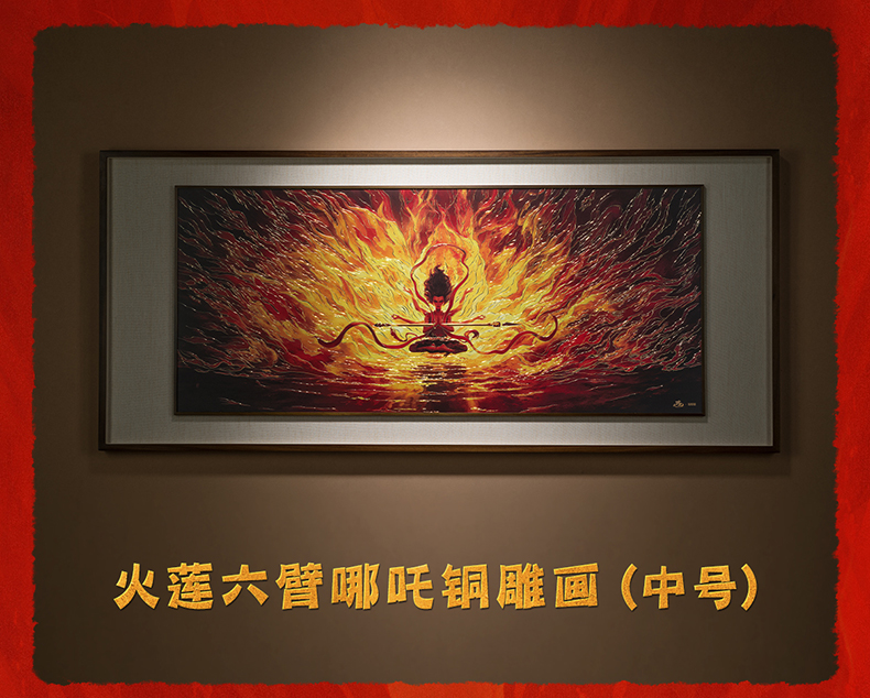 铜师傅《哪吒之魔童闹海》正版授权 火莲六臂哪吒铜雕画 装饰画